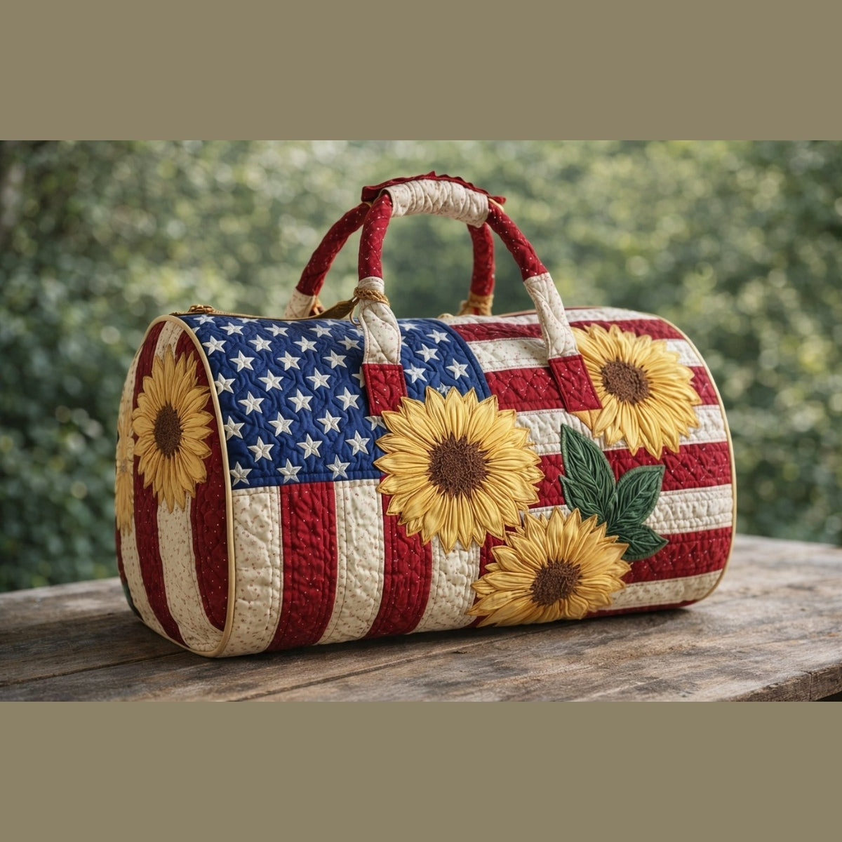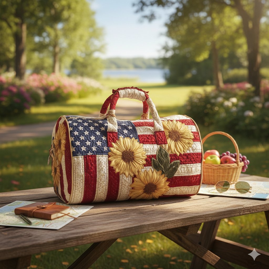 American Flag and Sunflowers Quilt Duffle Bag