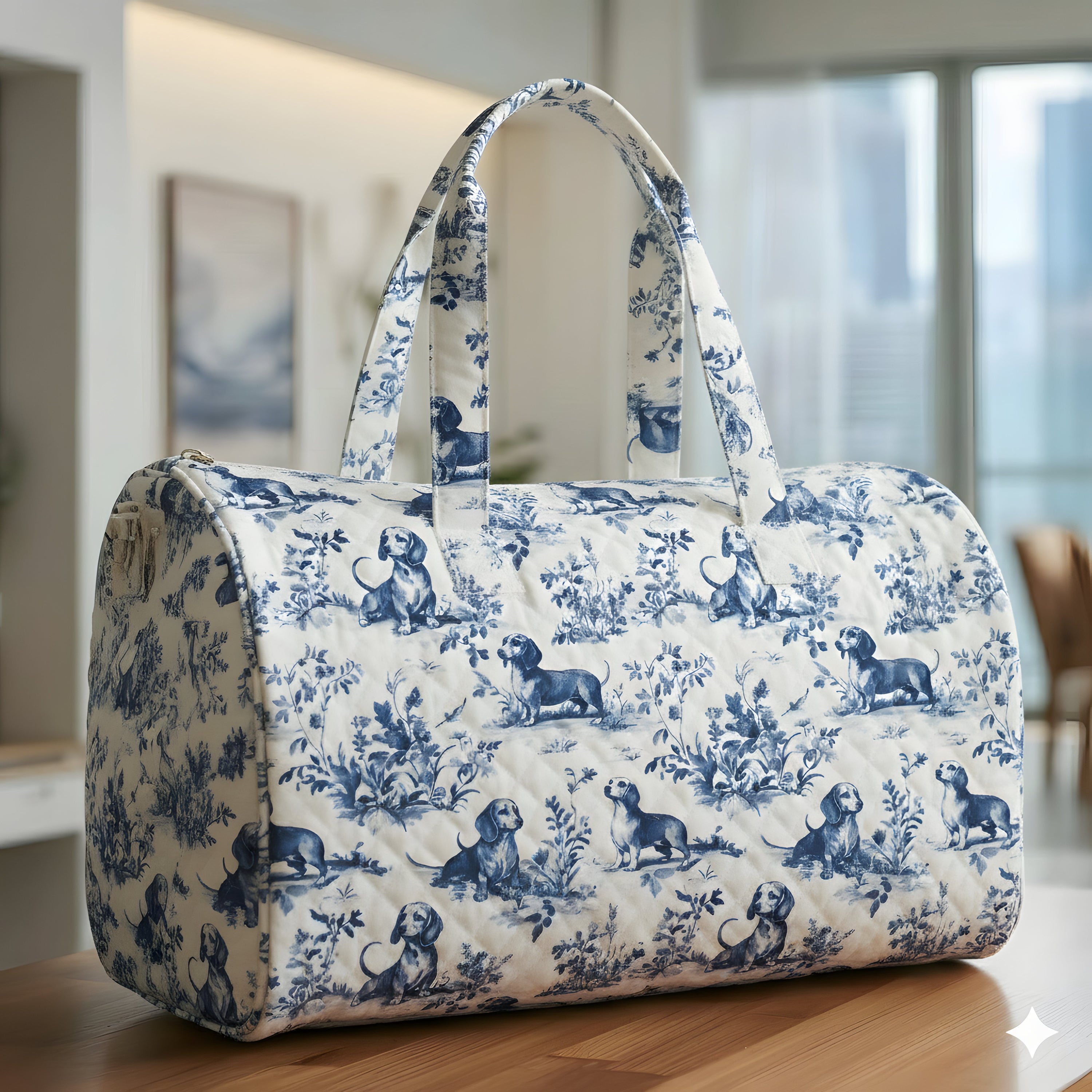 Dachshund Toile De Jouy Quilt Duffle Bag