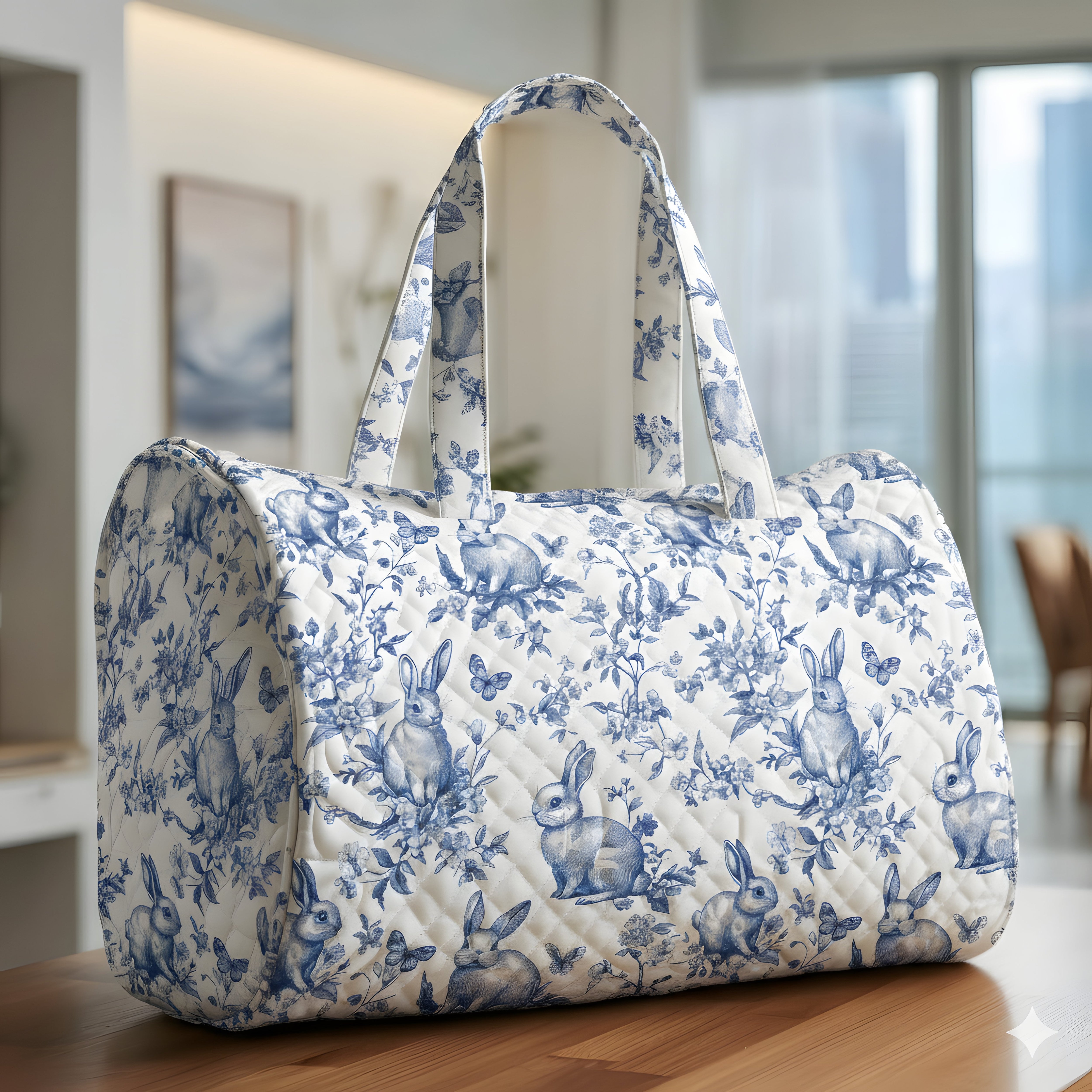Toile De Jouy Bunny Quilt Duffle Bag