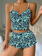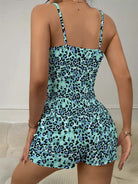 Abstract Modern Leopard Bow Ribbed Knit Pajama Set For Women