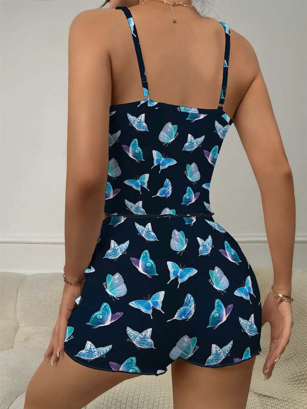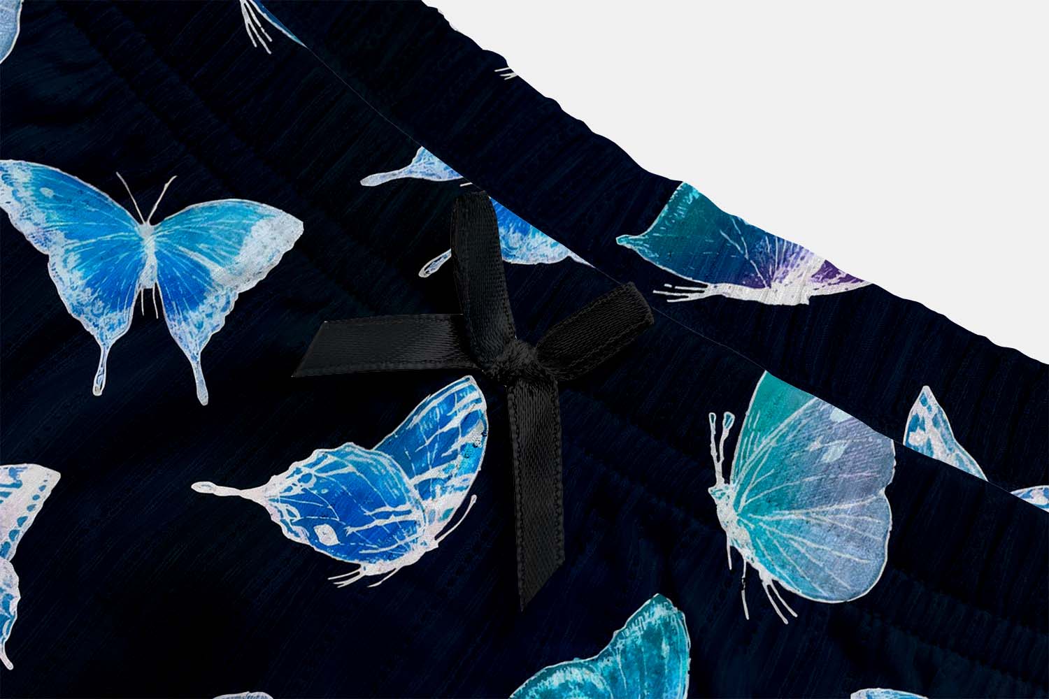 Blue Neon Butterfly Bow Ribbed Knit Pajama Set For Women
