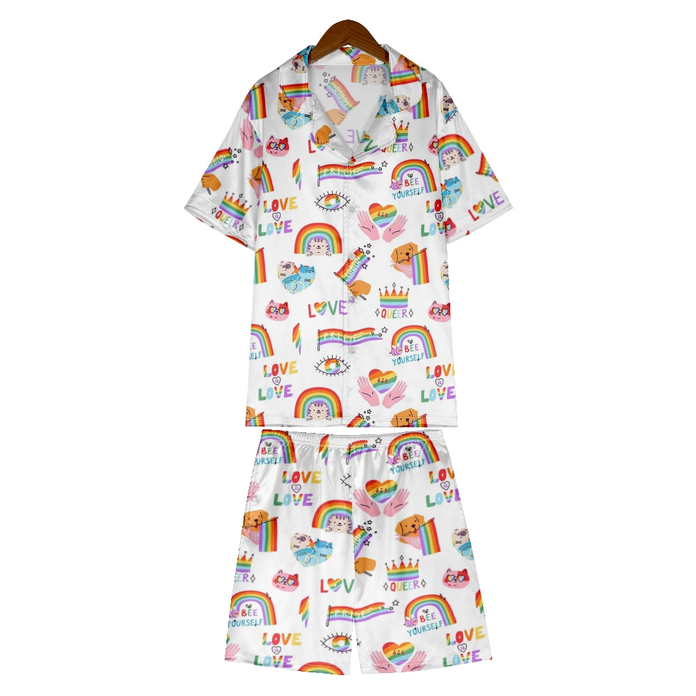 Rainbow Pride Love Bow Ribbed Knit Pajama Set For Women