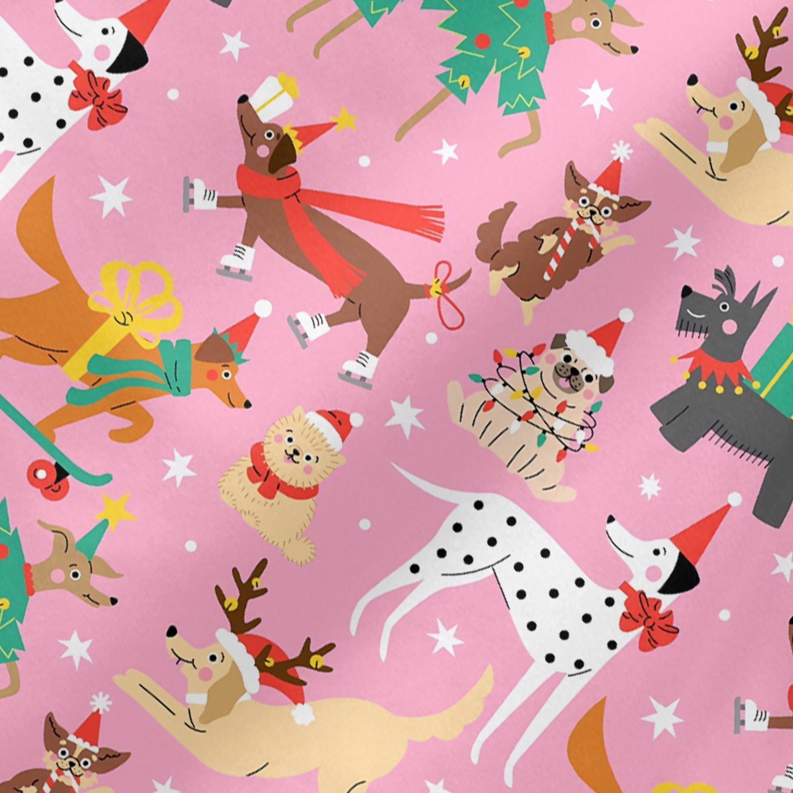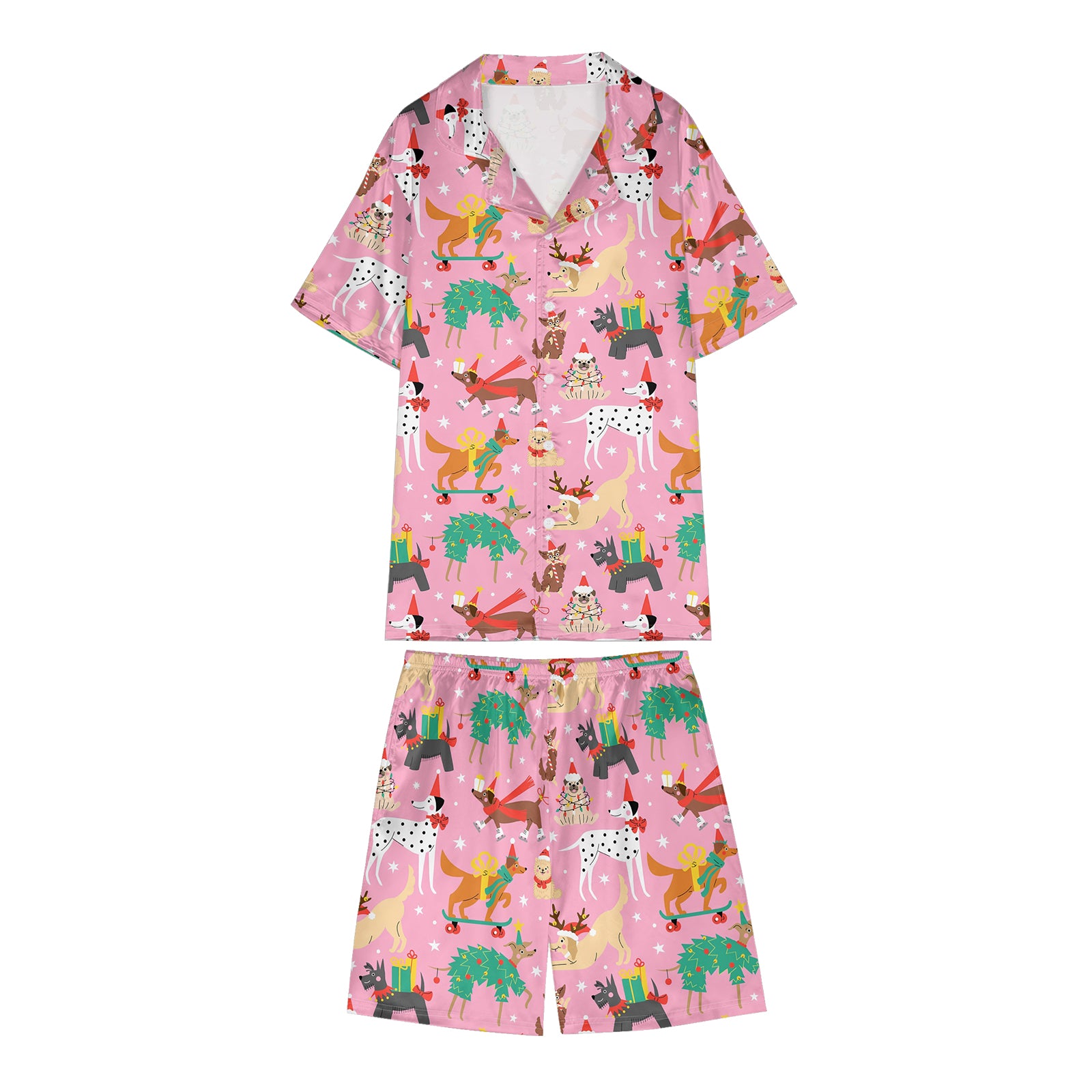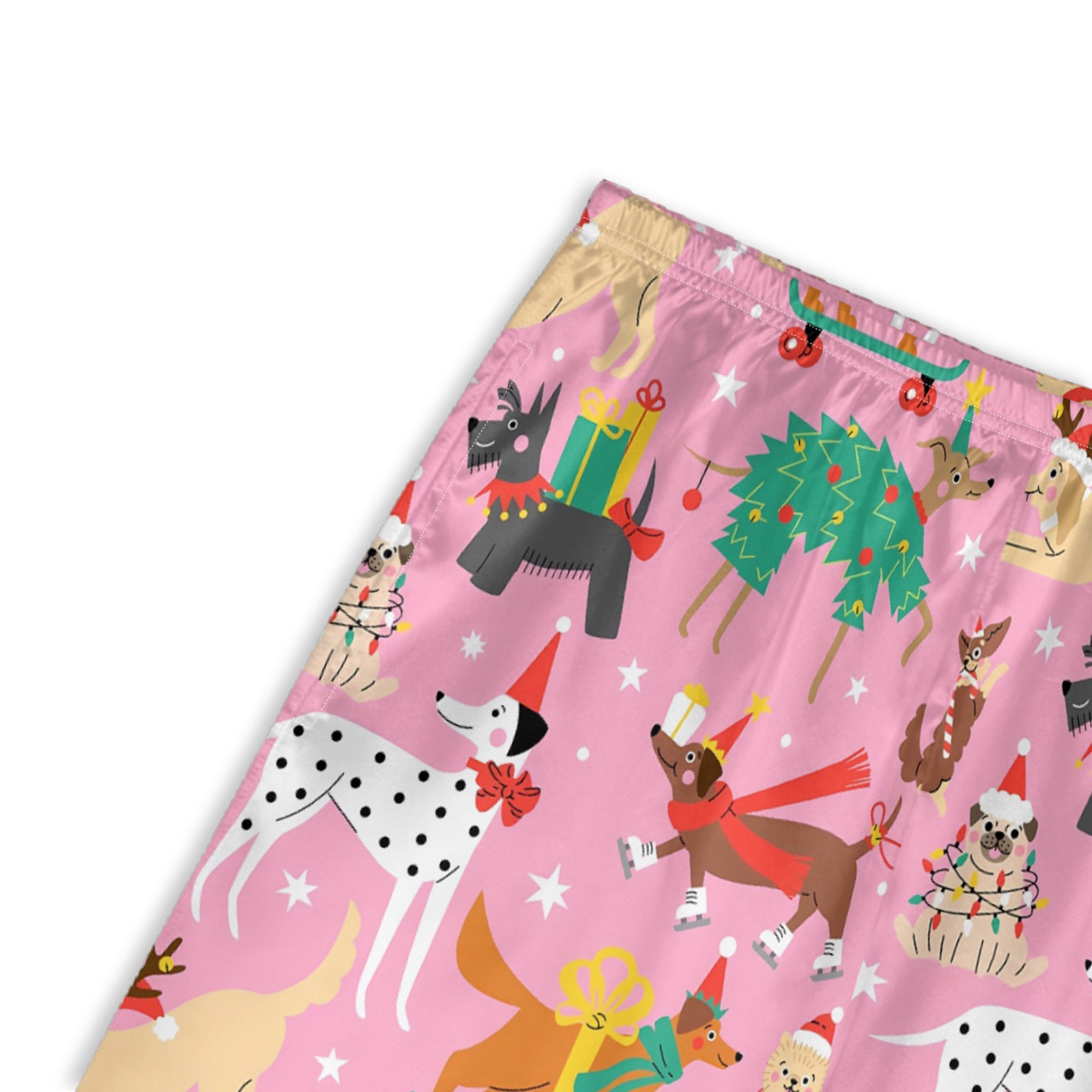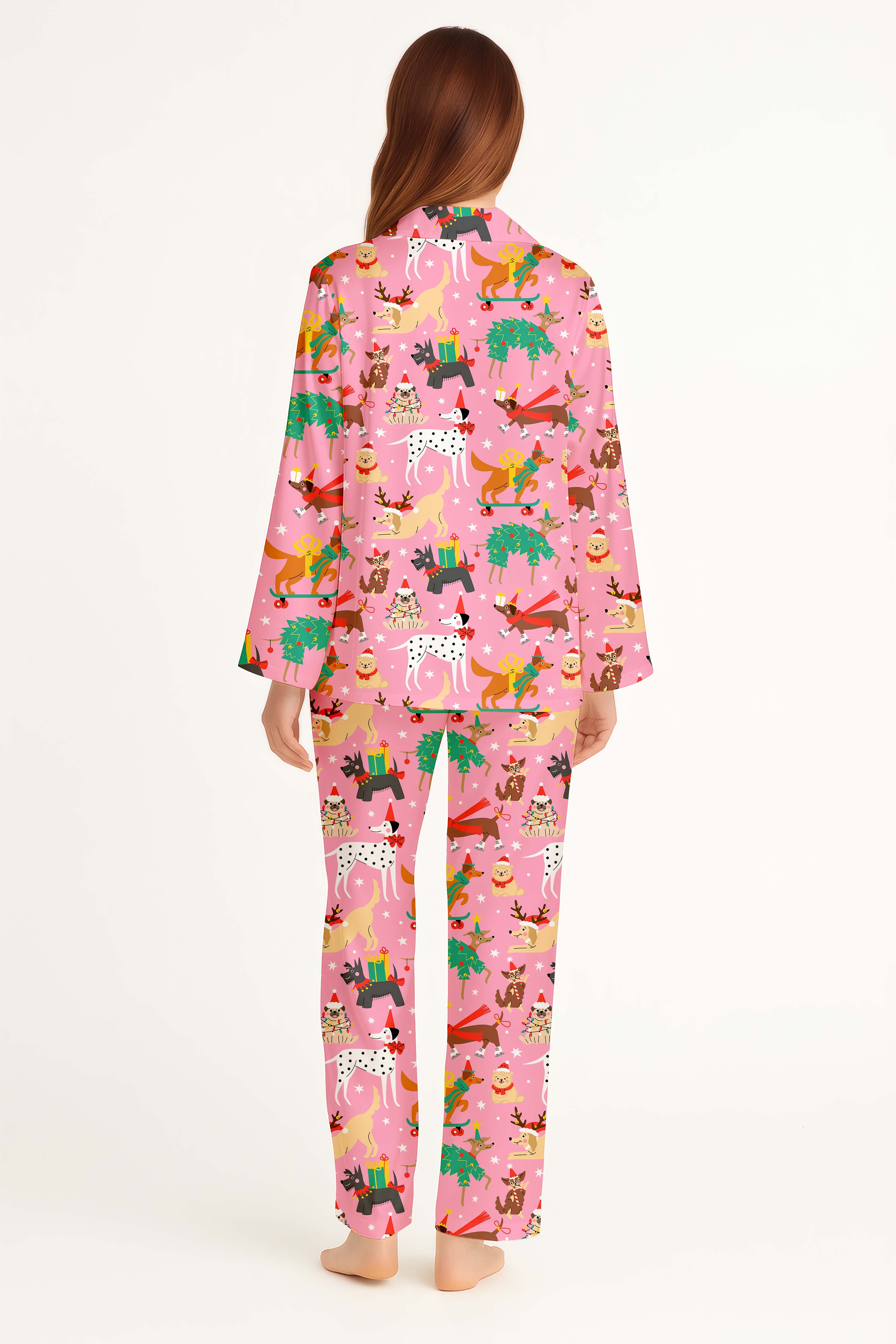 Christmas Dogs In Holiday Satin Pajama Set For Women