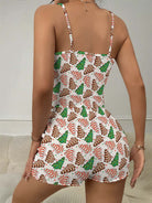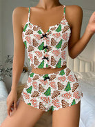 Christmas Tree Cakes Bow Ribbed Knit Pajama Set For Women