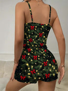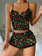 Christmas Tree Print Bow Ribbed Knit Pajama Set For Women