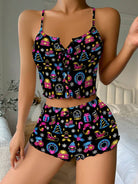 Neon Christmas Bow Ribbed Knit Pajama Set For Women