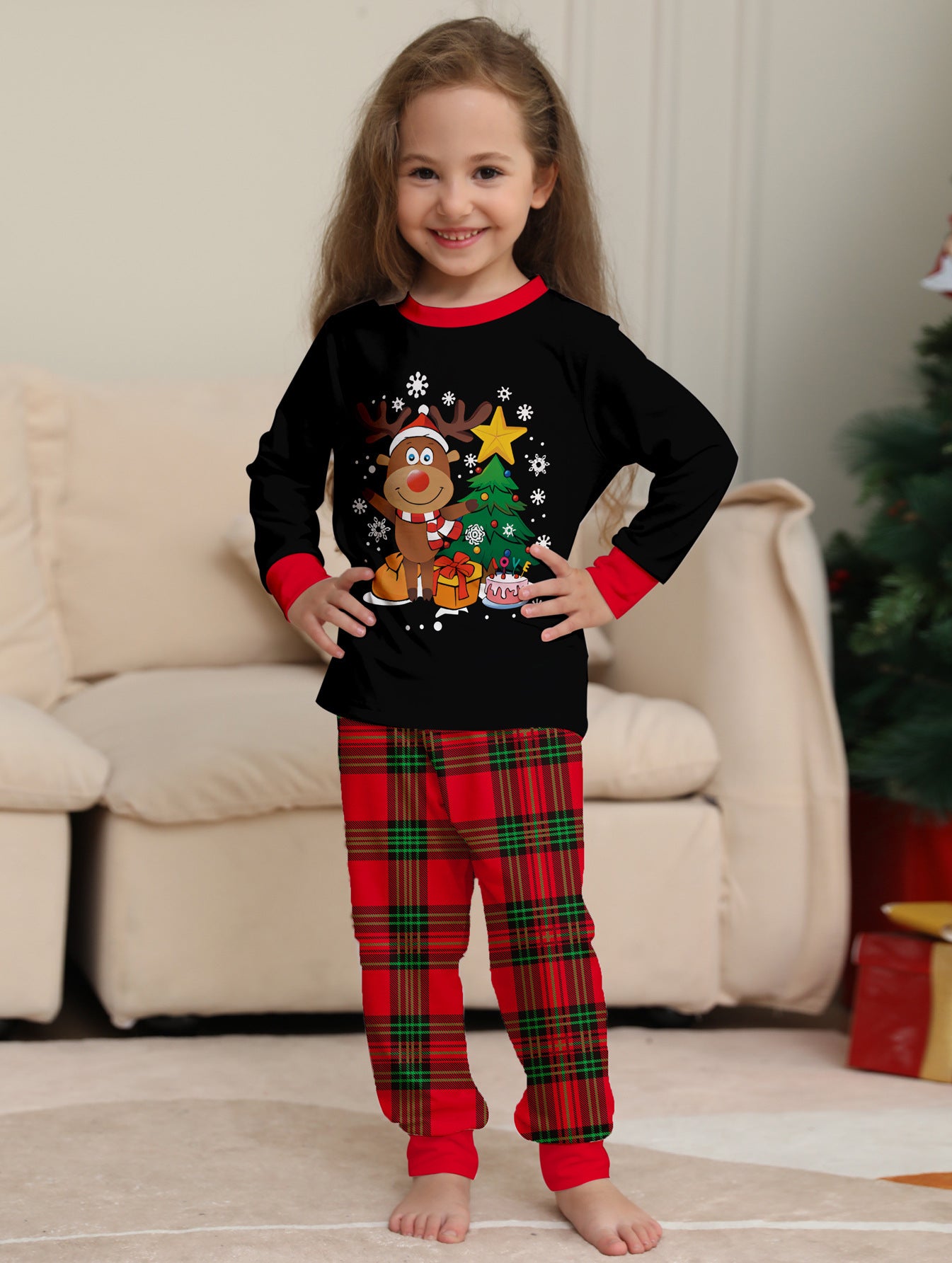 Reindeer Snowflakes Plaid Christmas Family Matching Pajamas Set