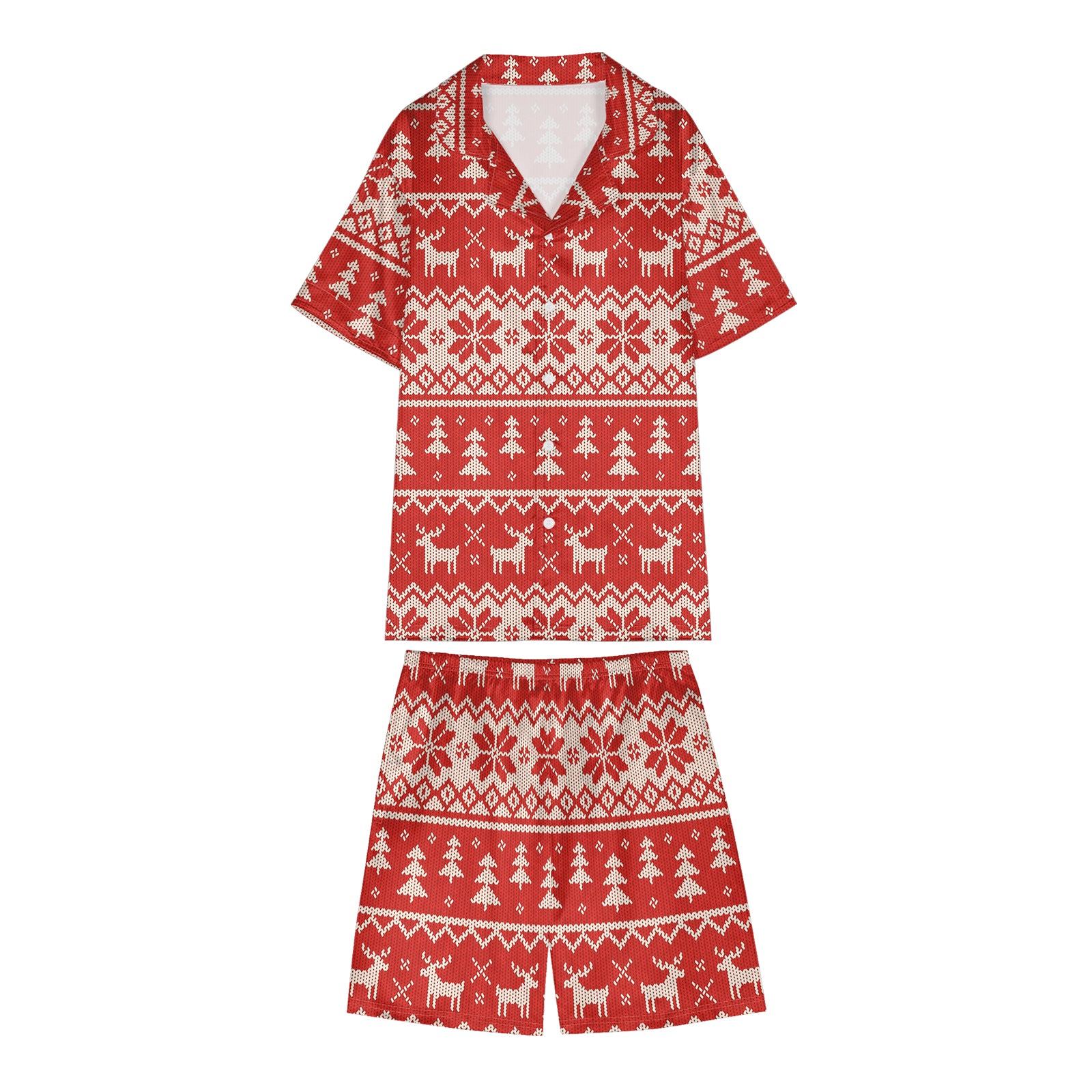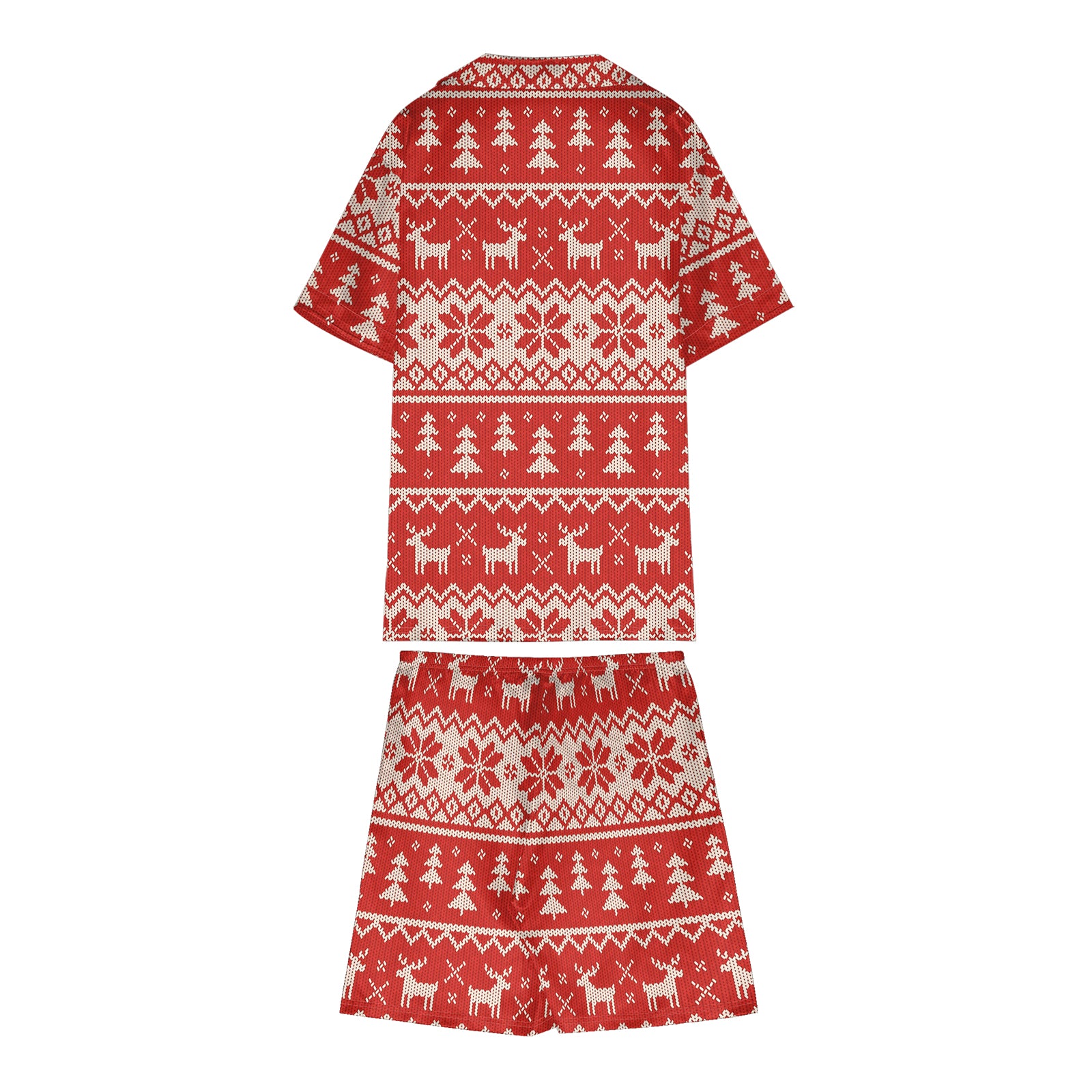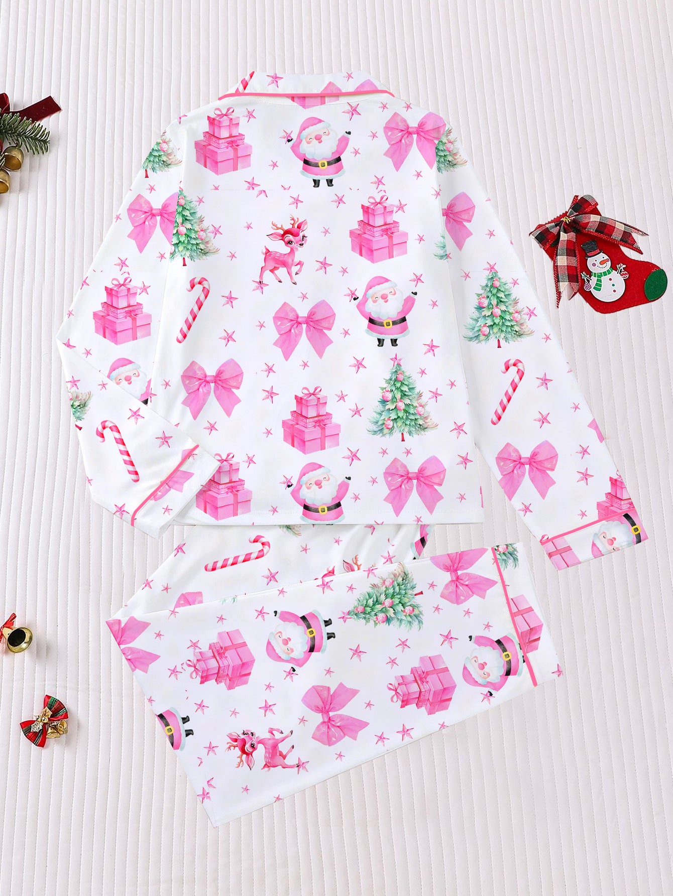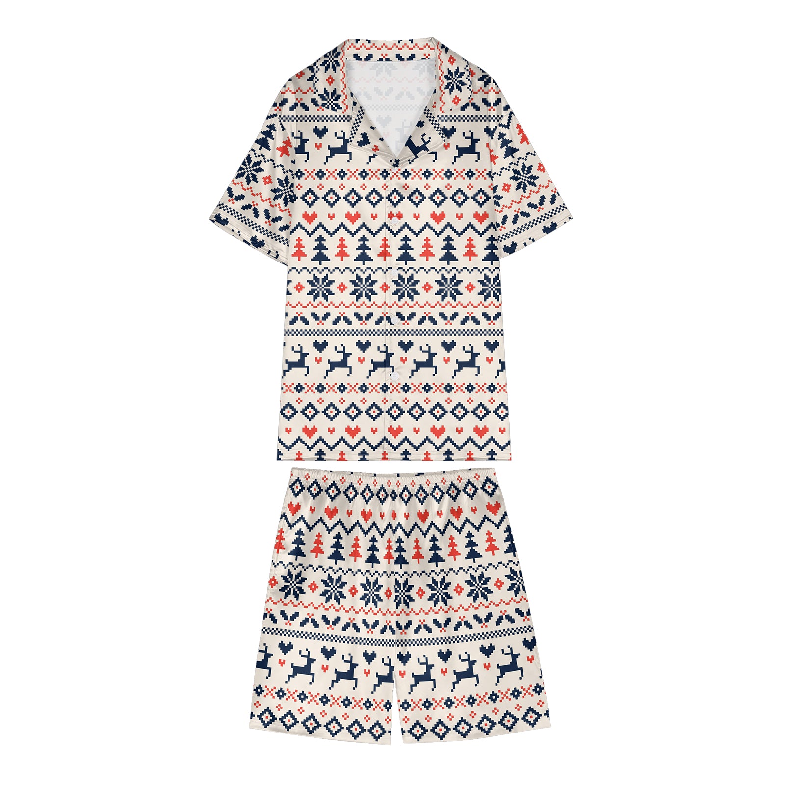 Hand-Knitted Printed Christmas Satin Pajama Set For Women