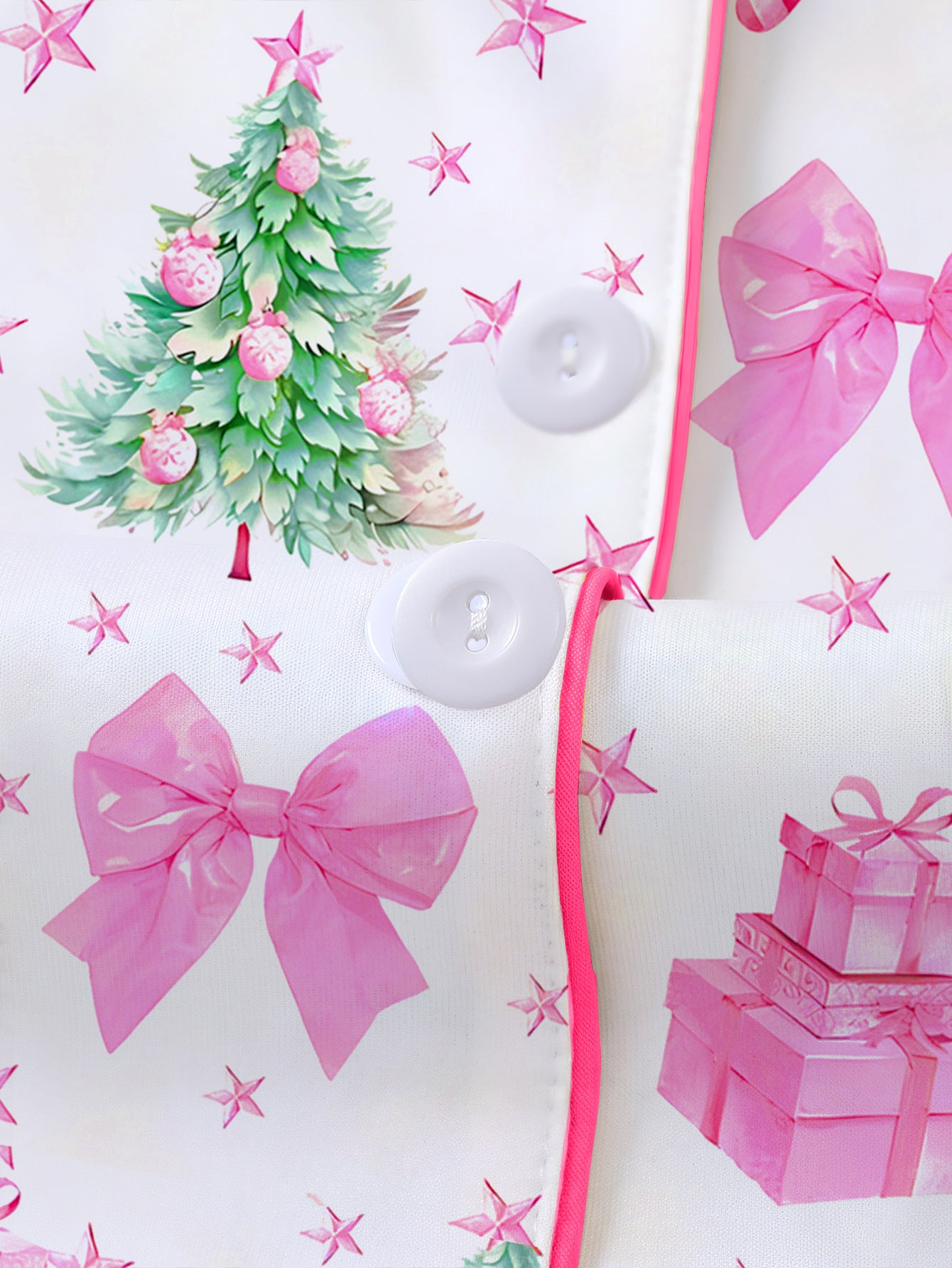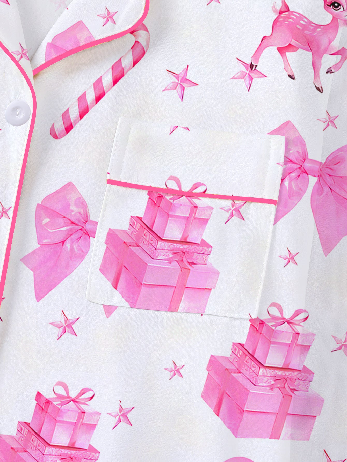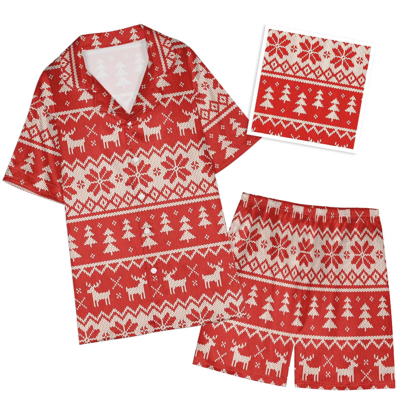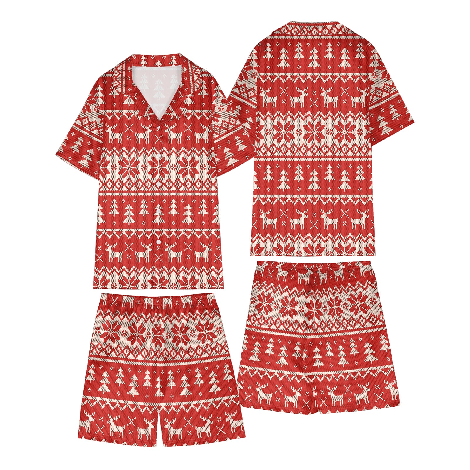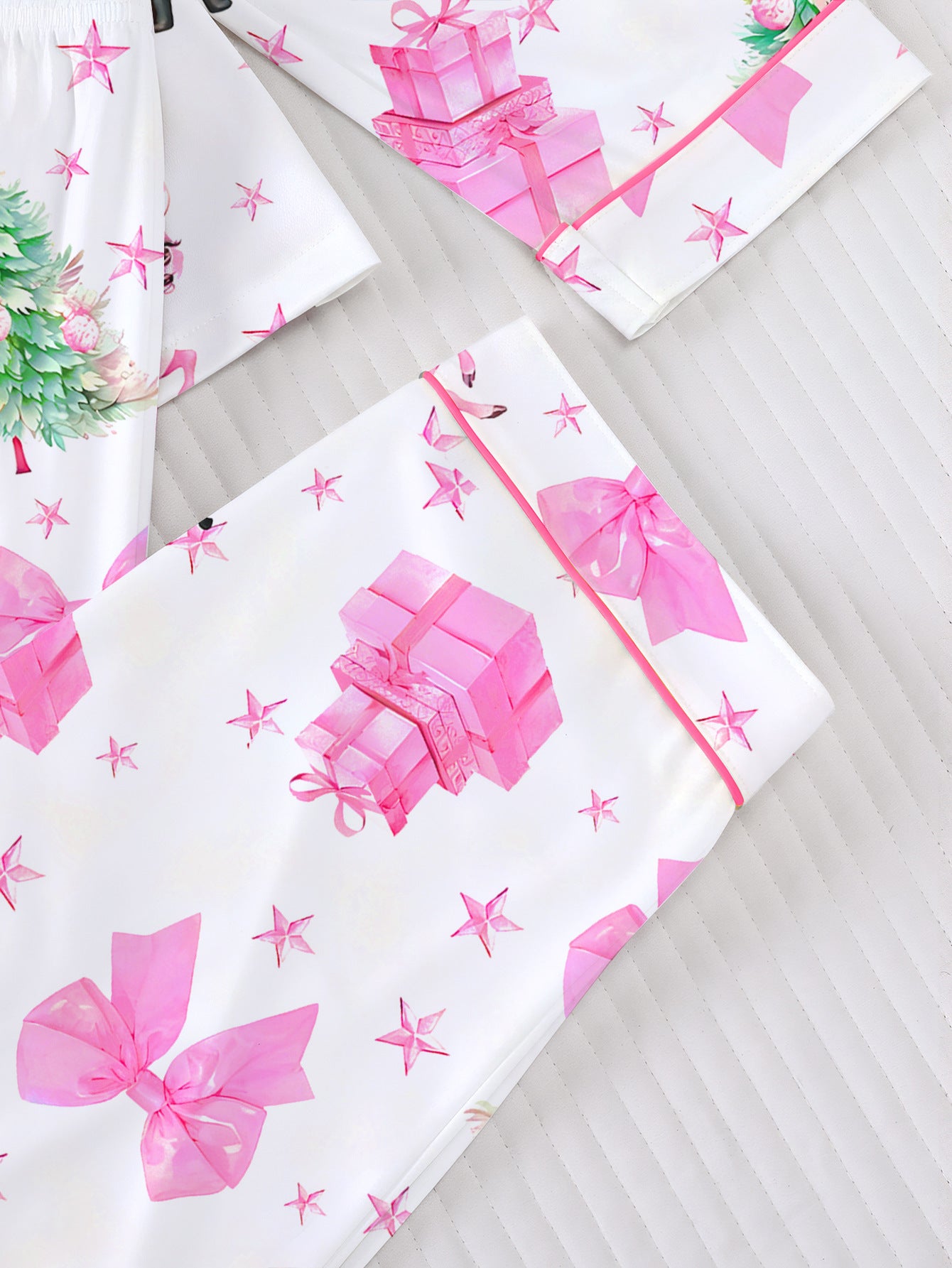 Hand-Knitted Printed Christmas Satin Pajama Set For Women