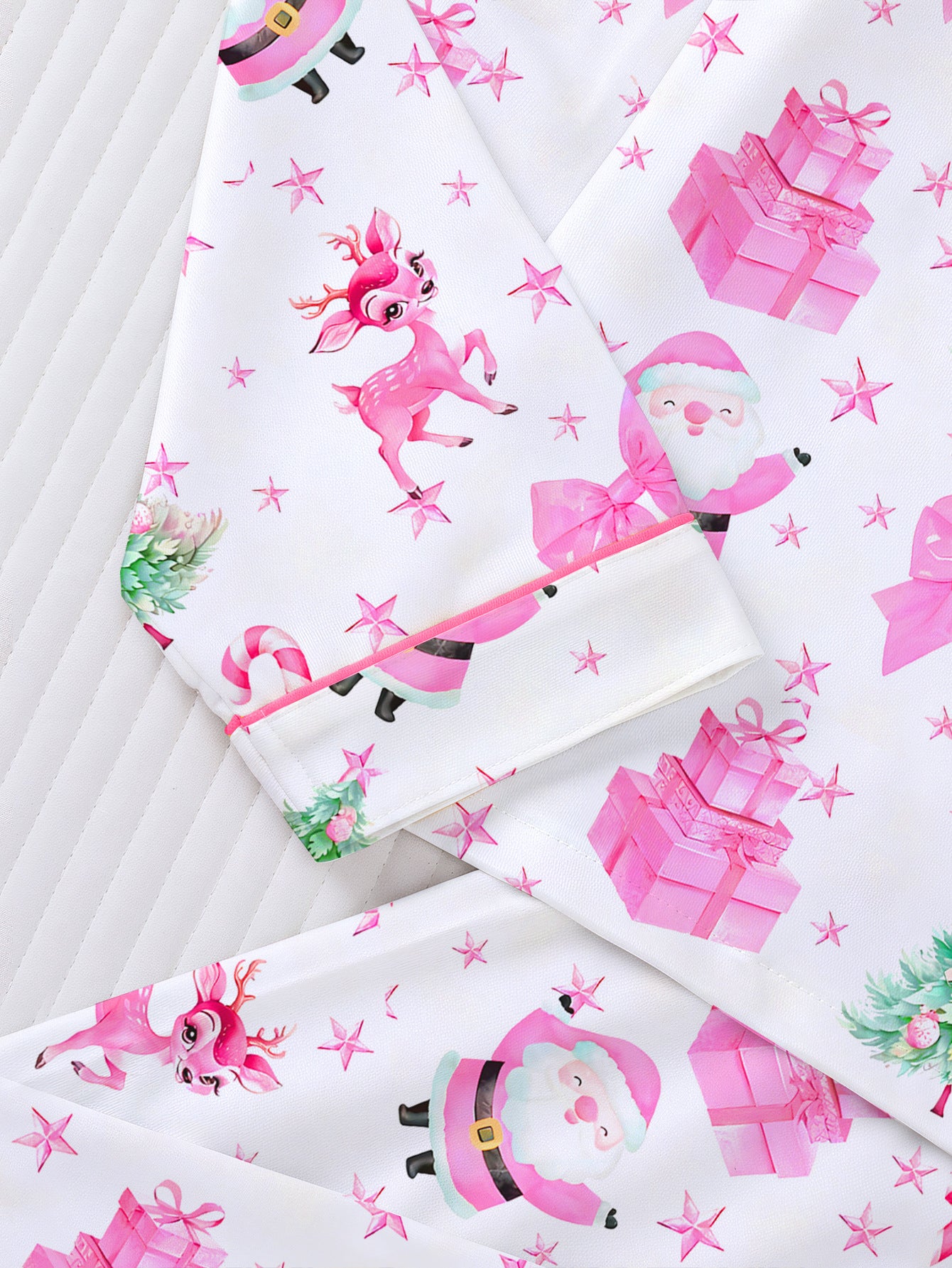 Pink Christmas Santa Long Pajama Set For Women