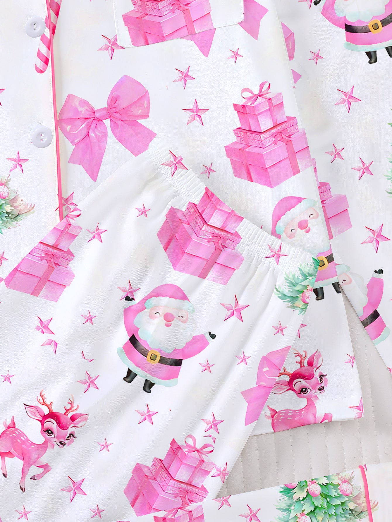 Pink Santa Claus Short Pajama Set For Women