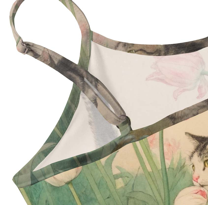 Chinoiserie Cat & Flowers Y2K Print Slip Dress