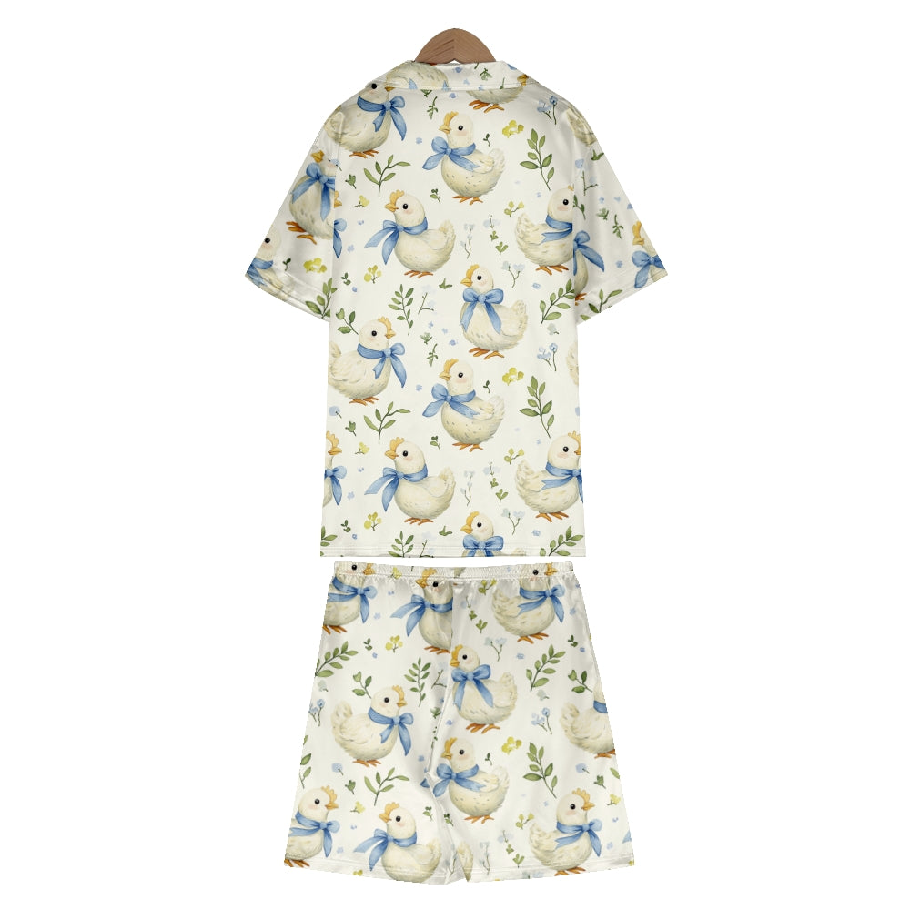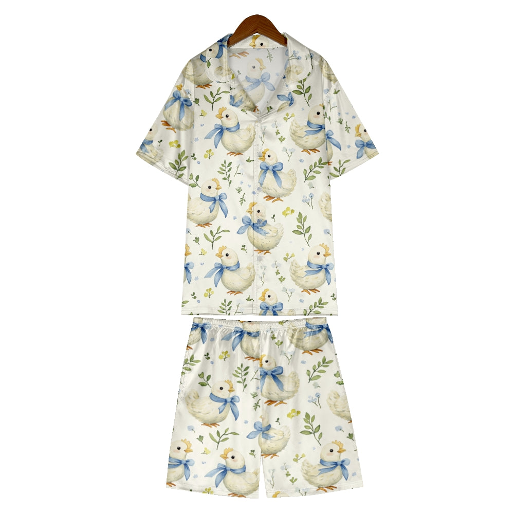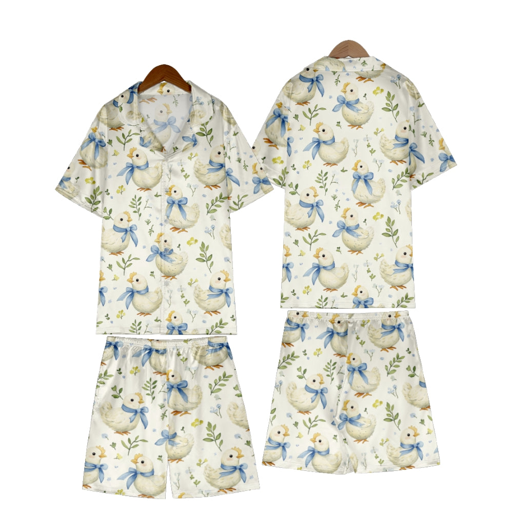 Easter Chick With Blue Bow Satin Pajama Set For Women