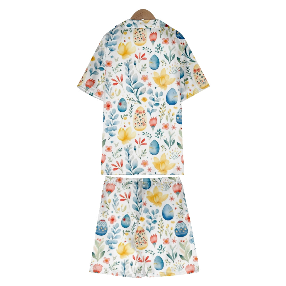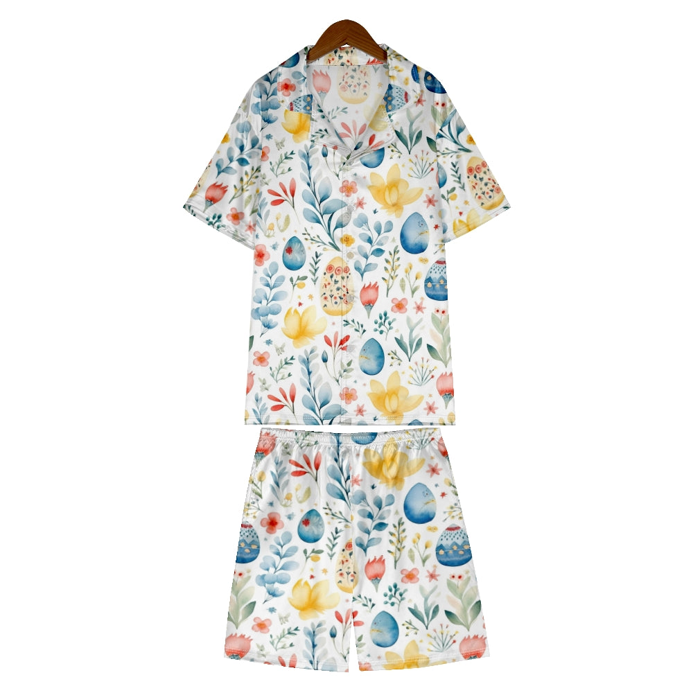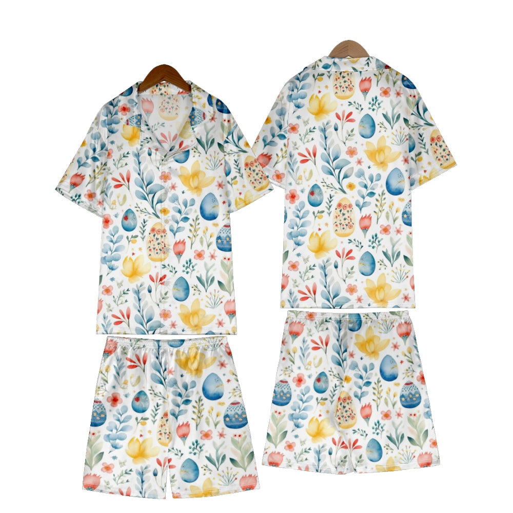 Easter Watercolor Eggs Satin Pajama Set For Women
