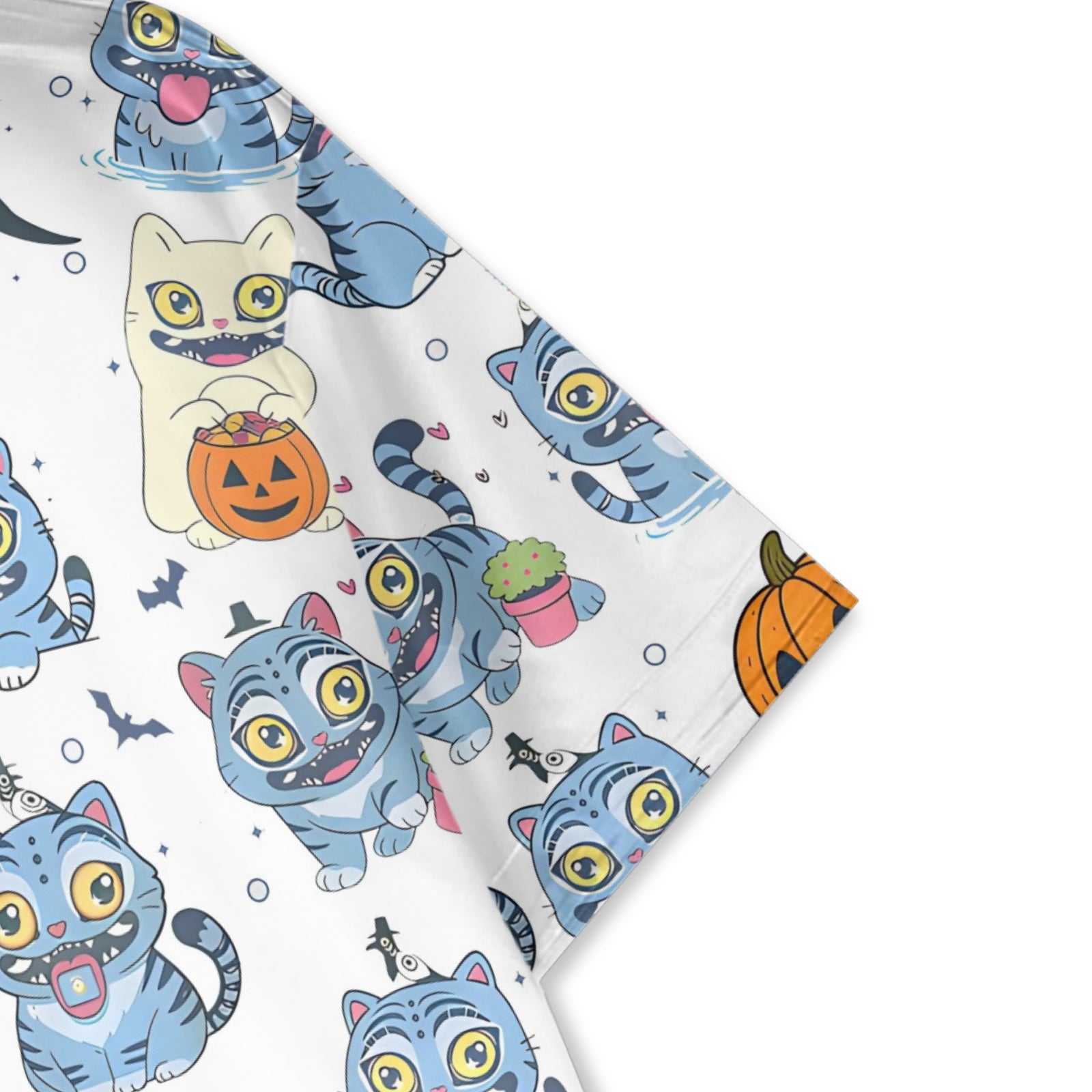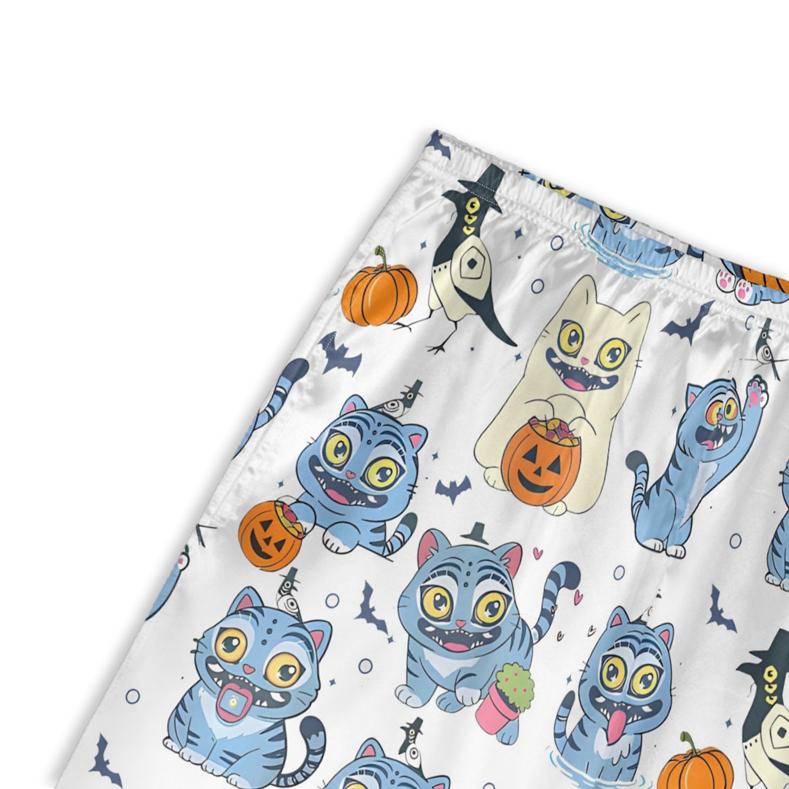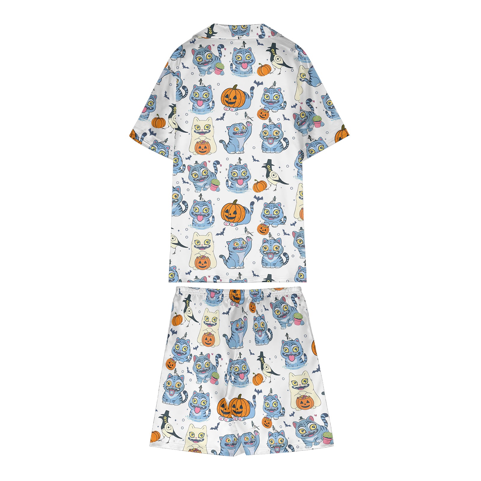 Cute Halloween Ghost Boo Cat Satin Pajama Set For Women