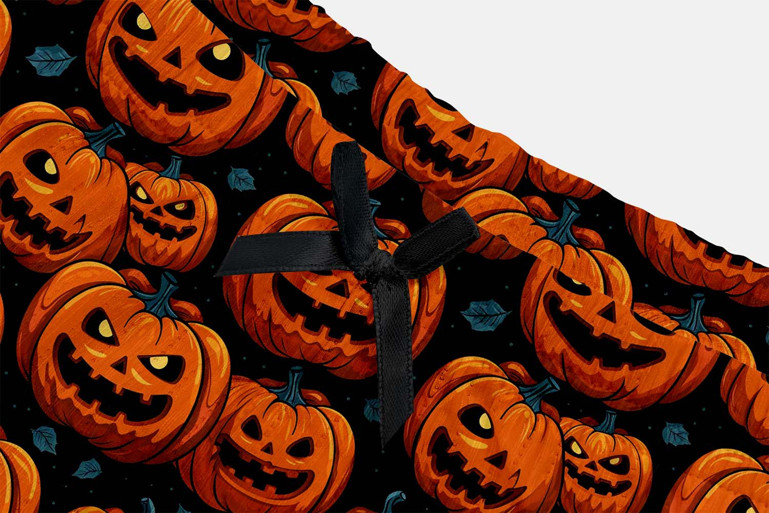 Halloween Pumpkin Devil Bow Ribbed Knit Pajama Set For Women