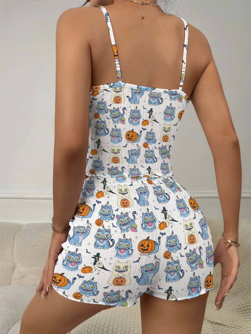 Kpop Demon Hunters Tiger Halloween Bow Ribbed Knit Pajama Set For Women