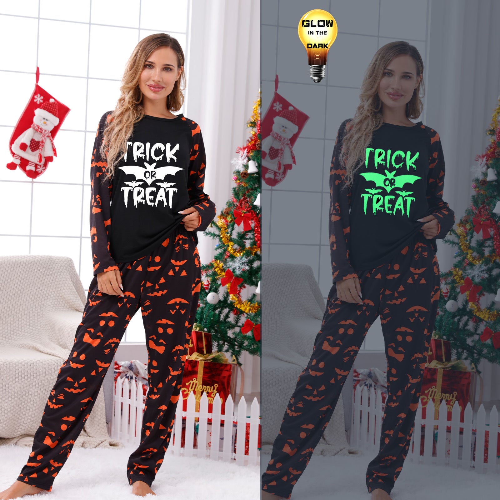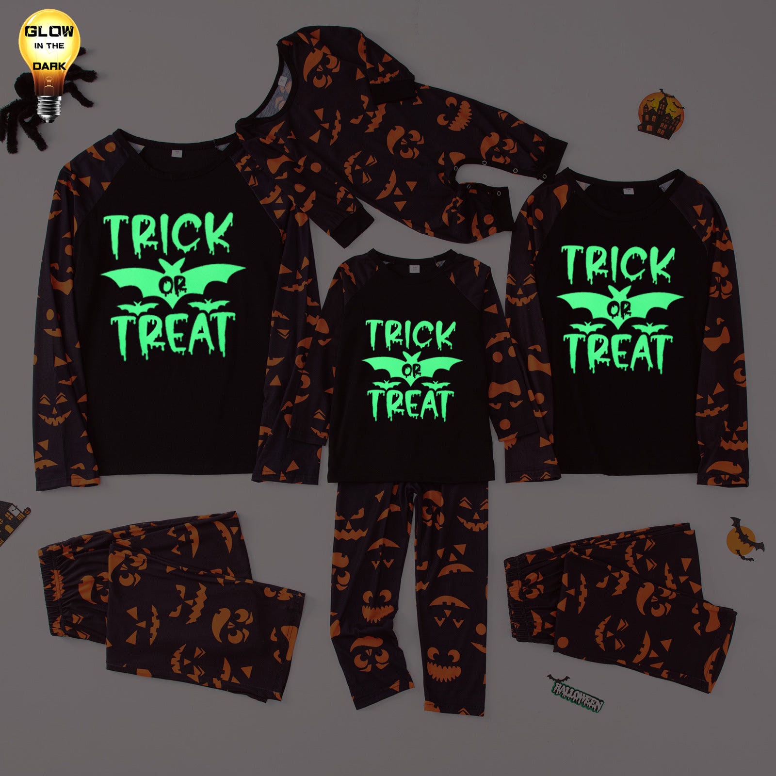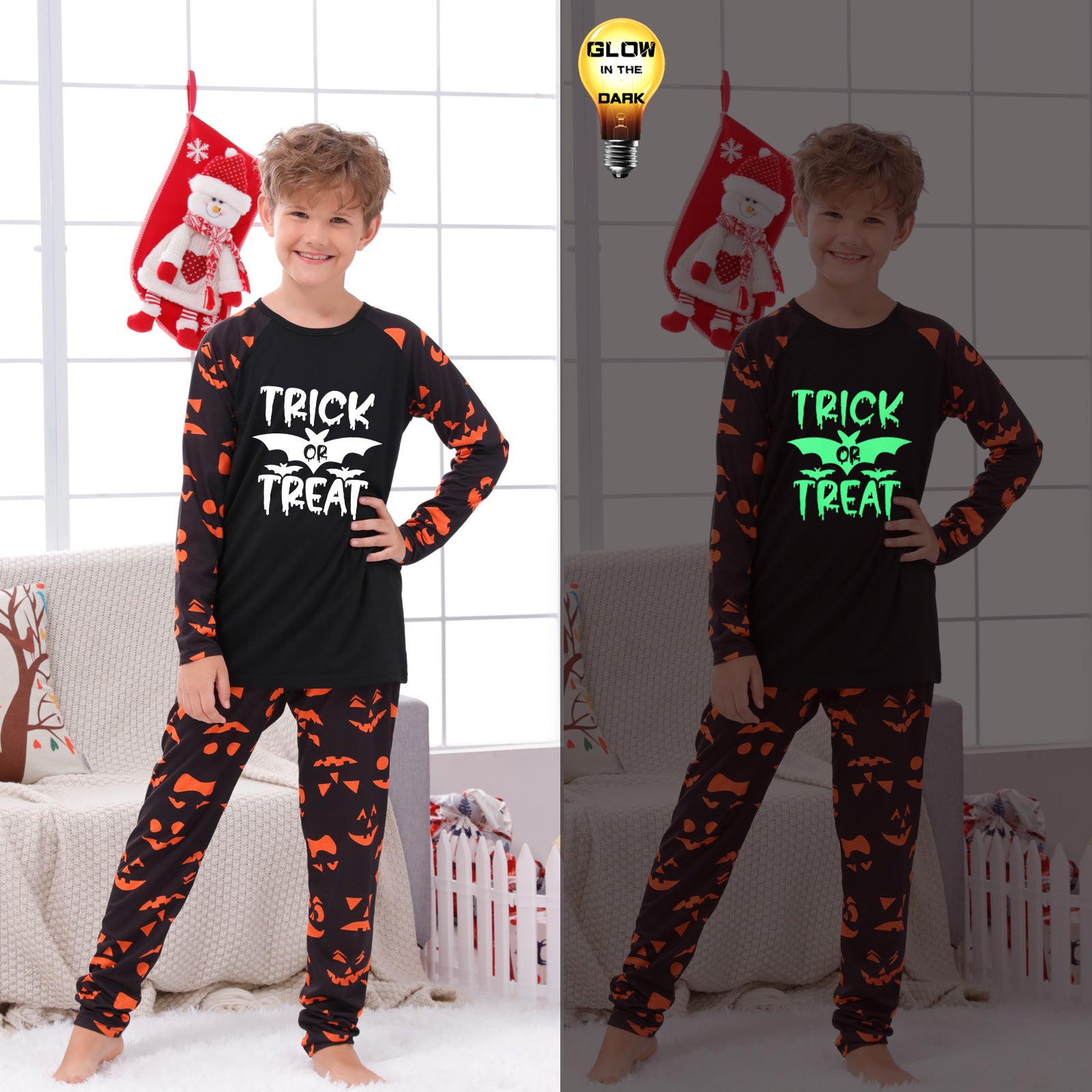 Trick Or Treat Luminous Halloween Short Sleeve Family Matching Pajamas Set