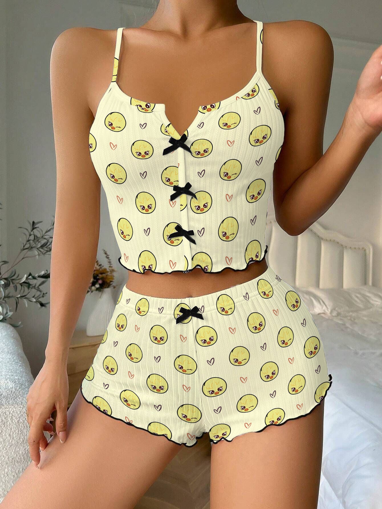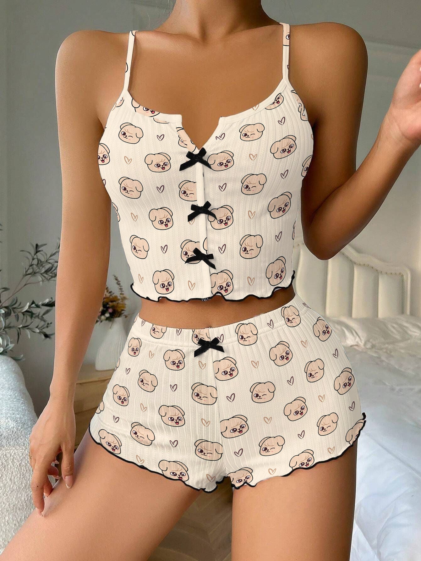 Stray Kids Tour Domin ATE Bow Ribbed Knit Pajama Set For Women
