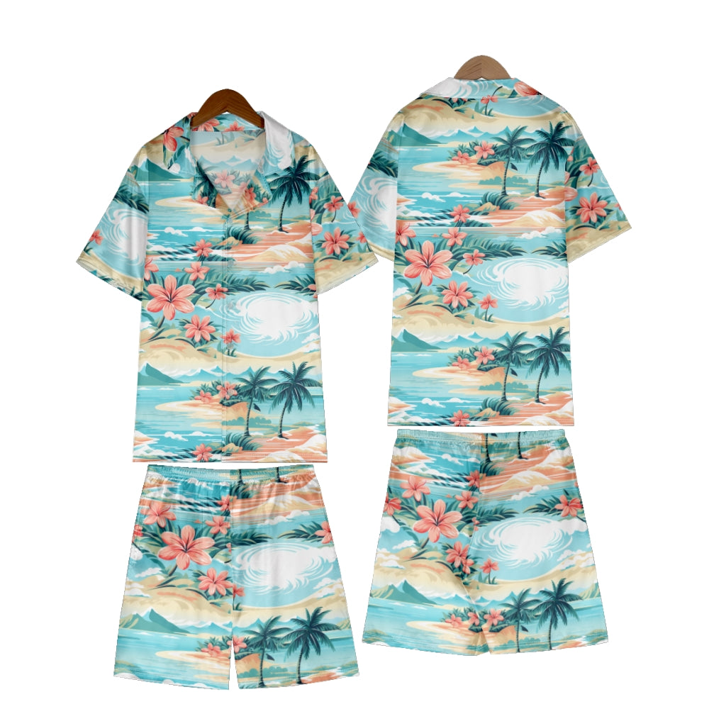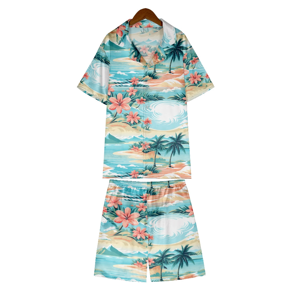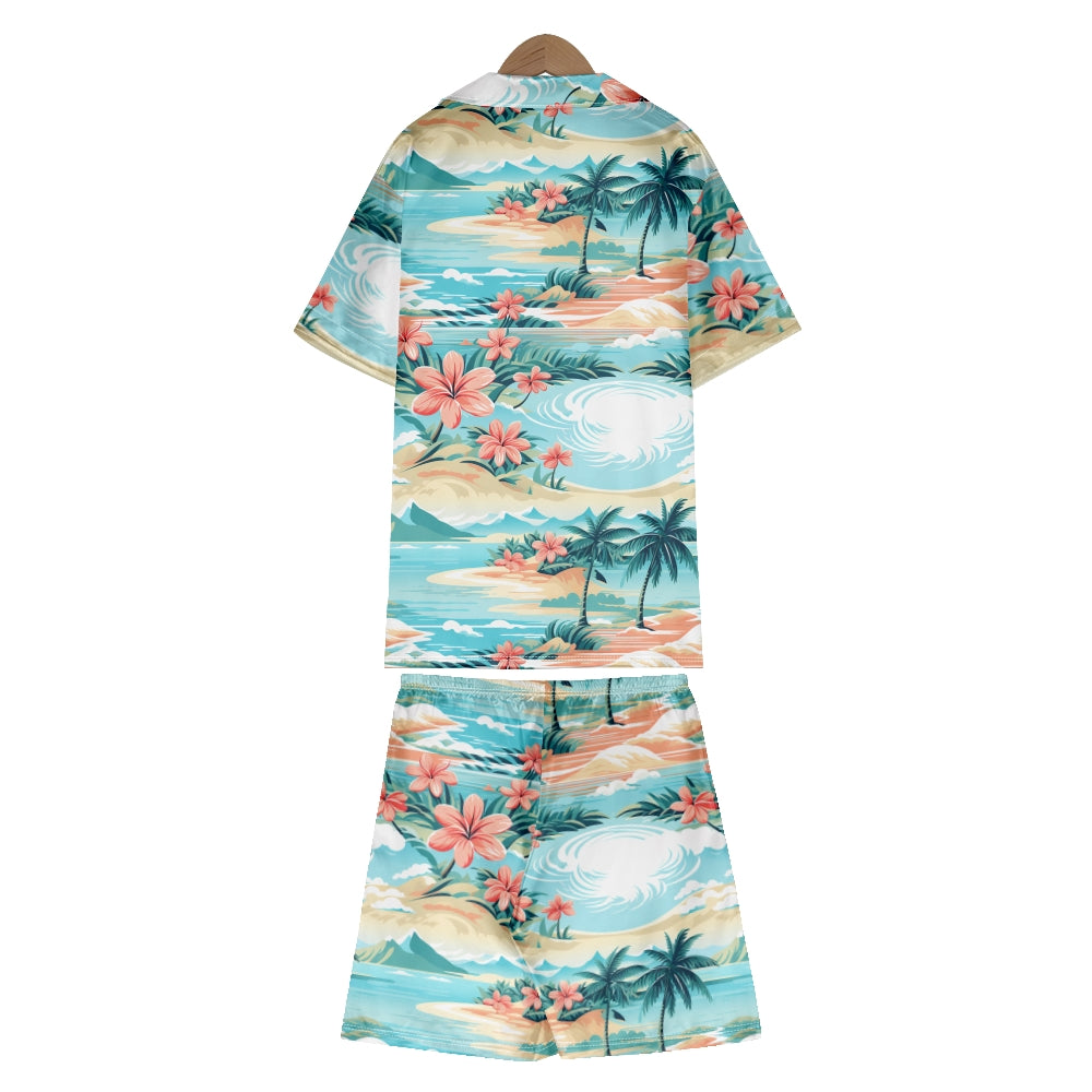 Hawaiian Beach Vacation Satin Pajama Set For Women