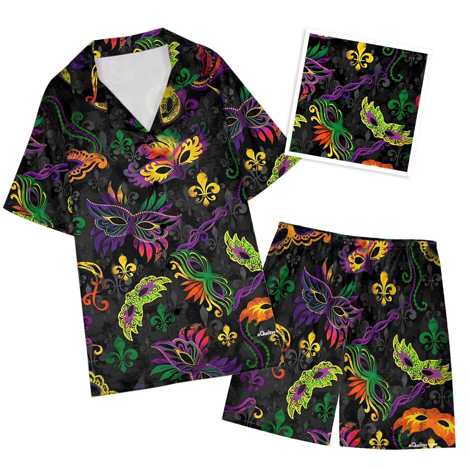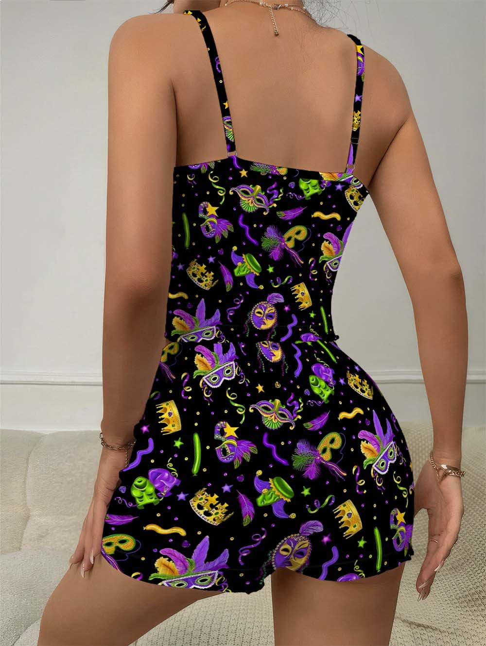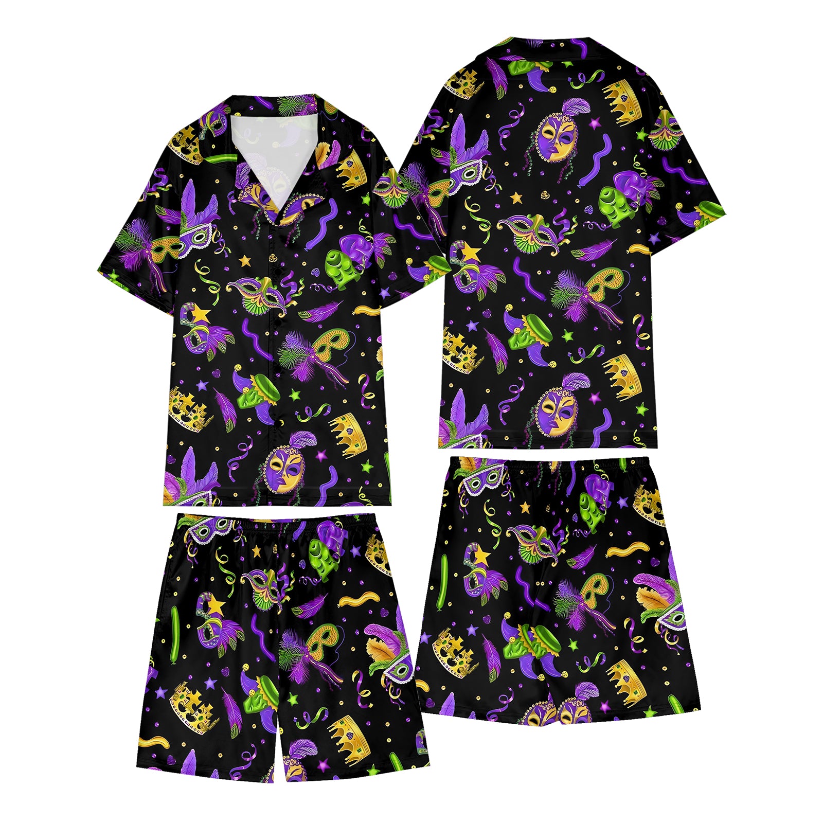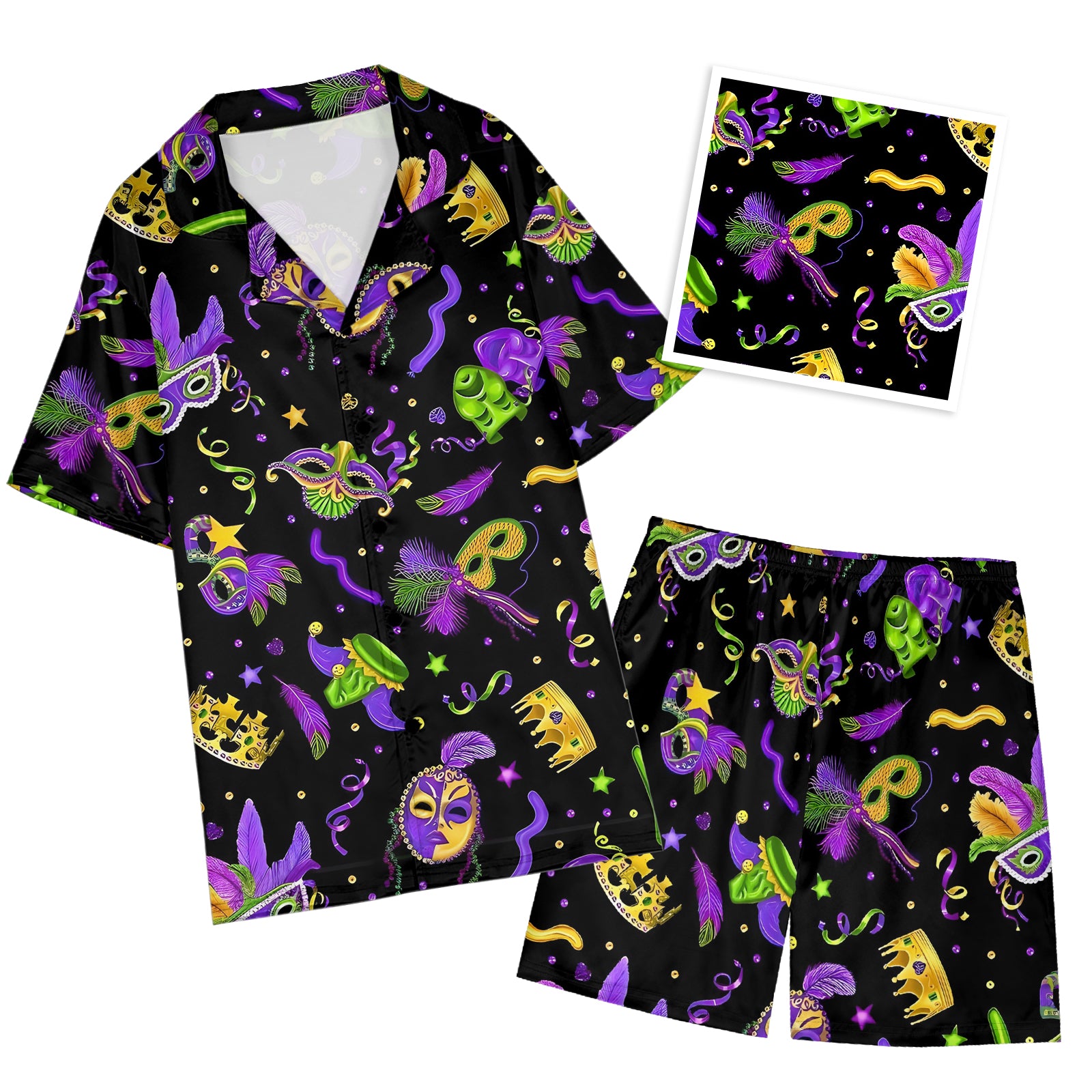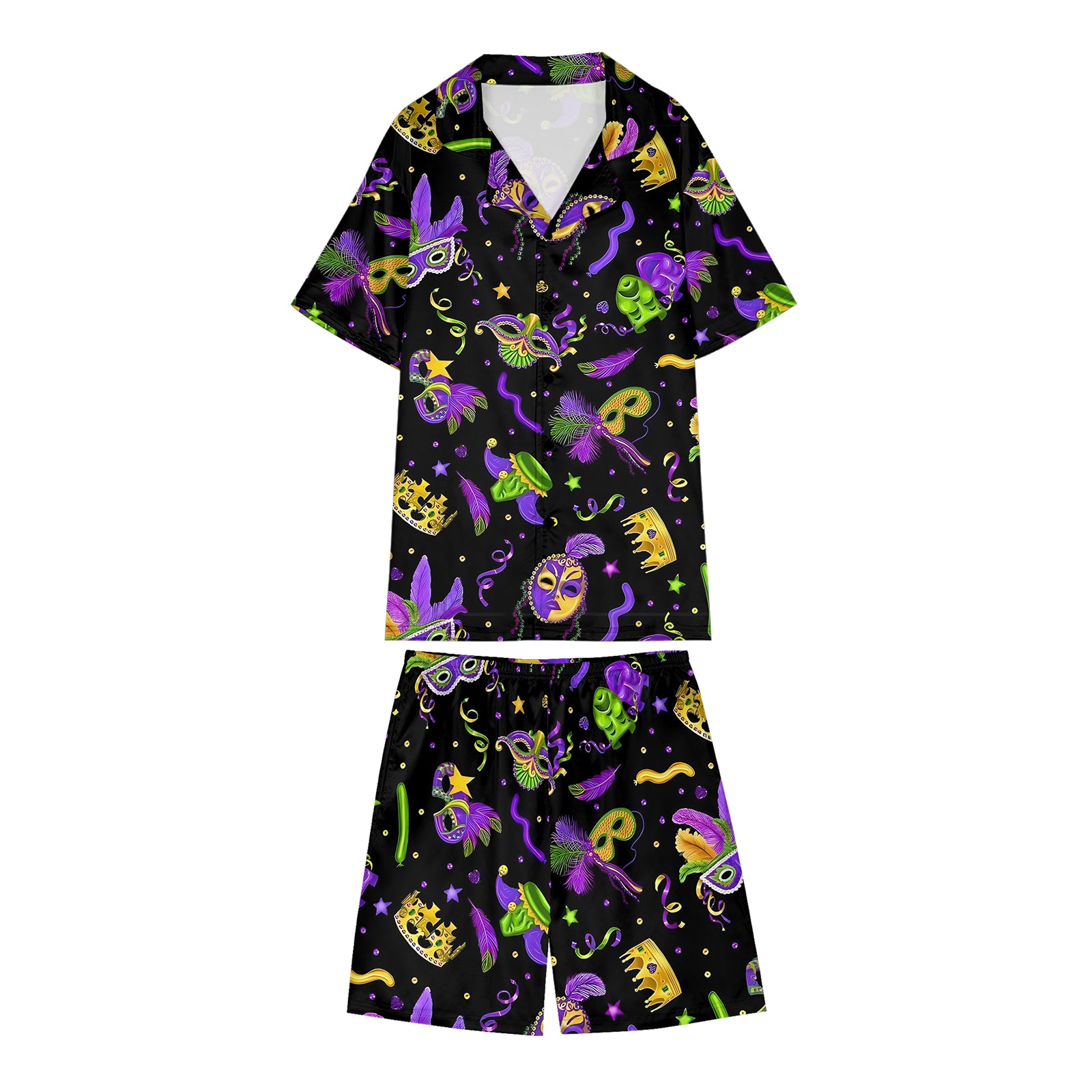 Mardi Gras Carnival Mask Satin Pajama Set For Women