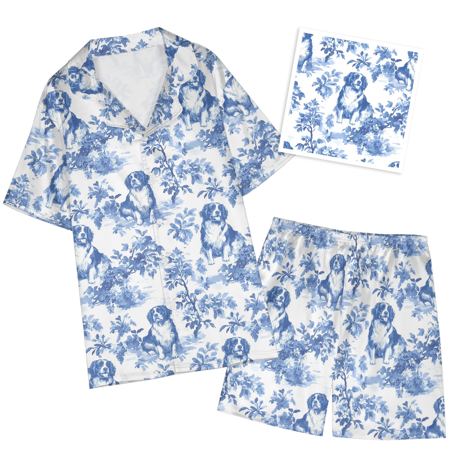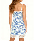 Blue Toile De Jouy Bernese Mountain Dog Lace Camisole Bodydress