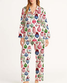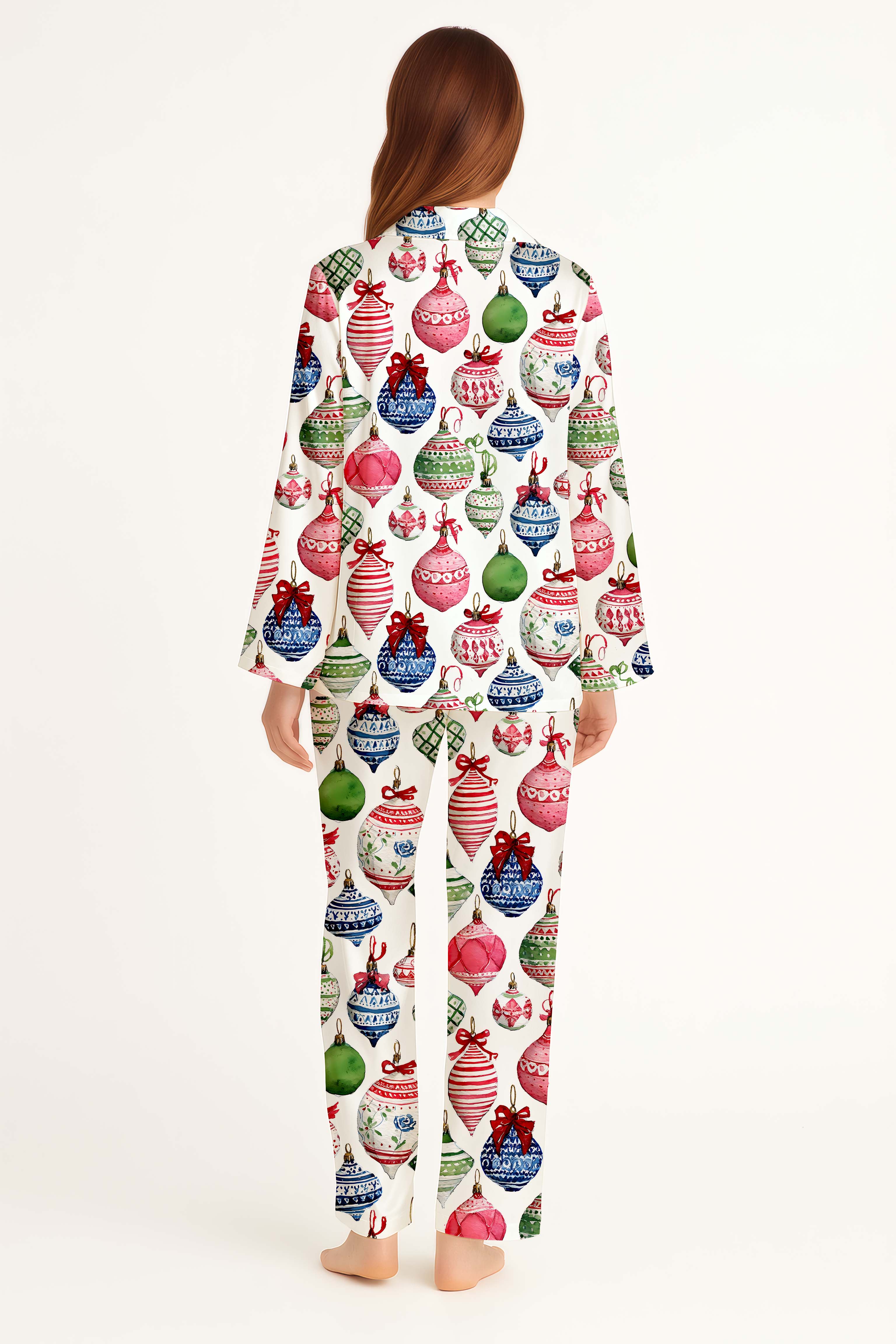 Colorful Christmas Baubles Satin Pajama Long Set For Women