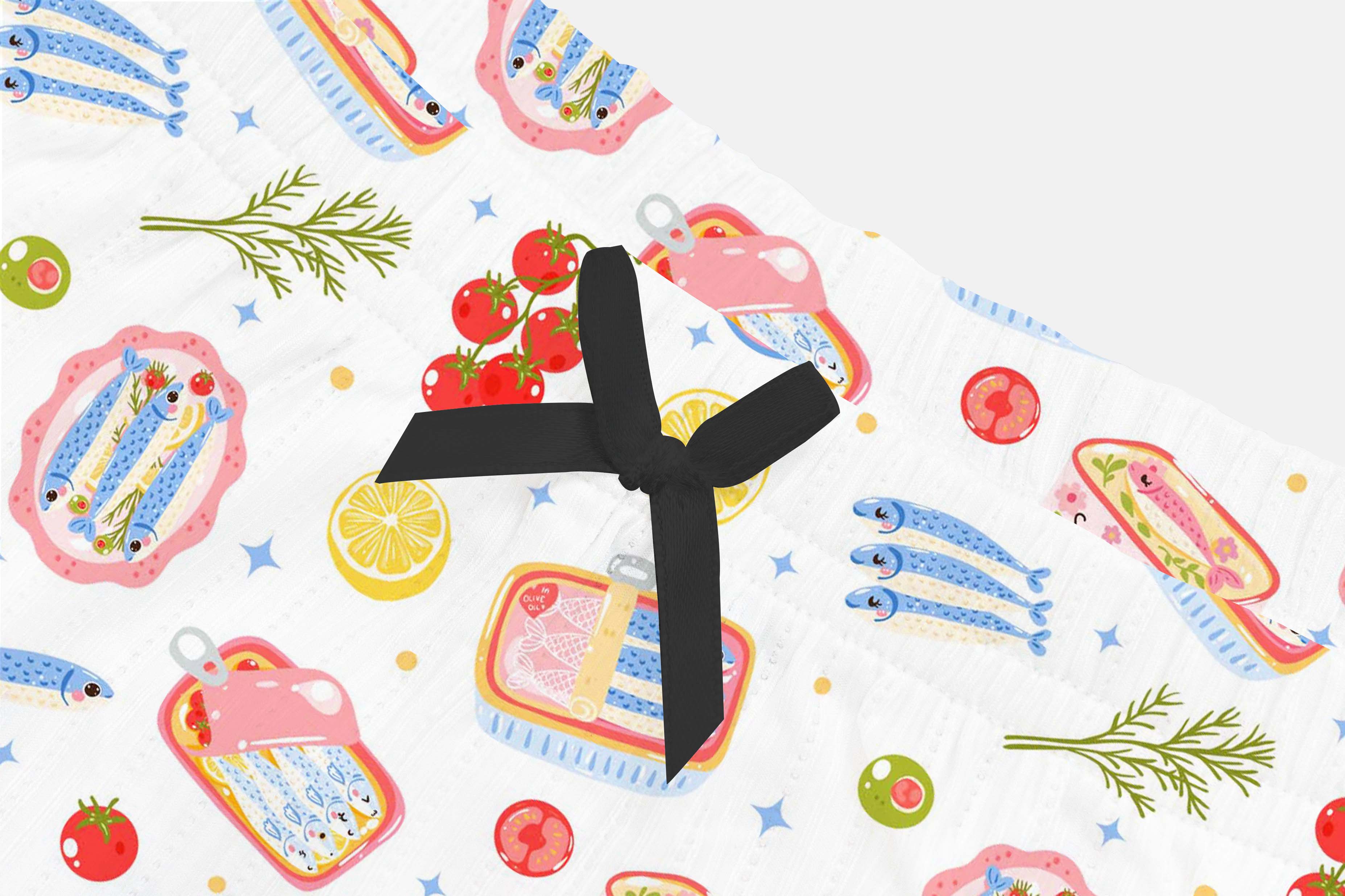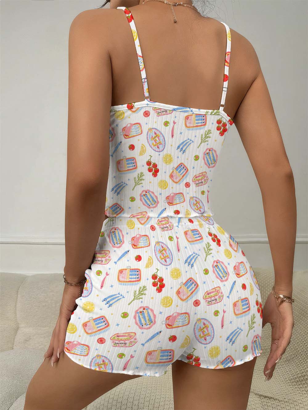 Cute Sardines Can Bow Ribbed Knit Pajama Set For Women
