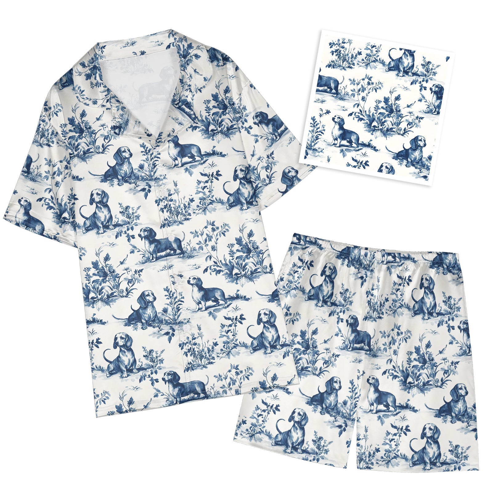 Dachshund Toile De Jouy Lace Camisole Bodydress
