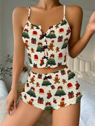Fluffy Christmas Tree Bow Ribbed Knit Pajama Set For Women