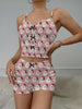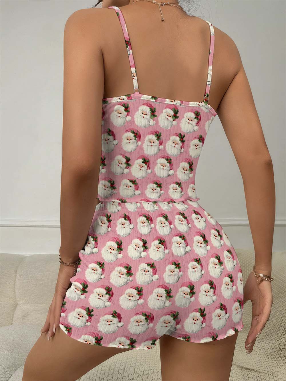 Pink Cute Santa Claus Avatar Bow Ribbed Knit Pajama Set For Women