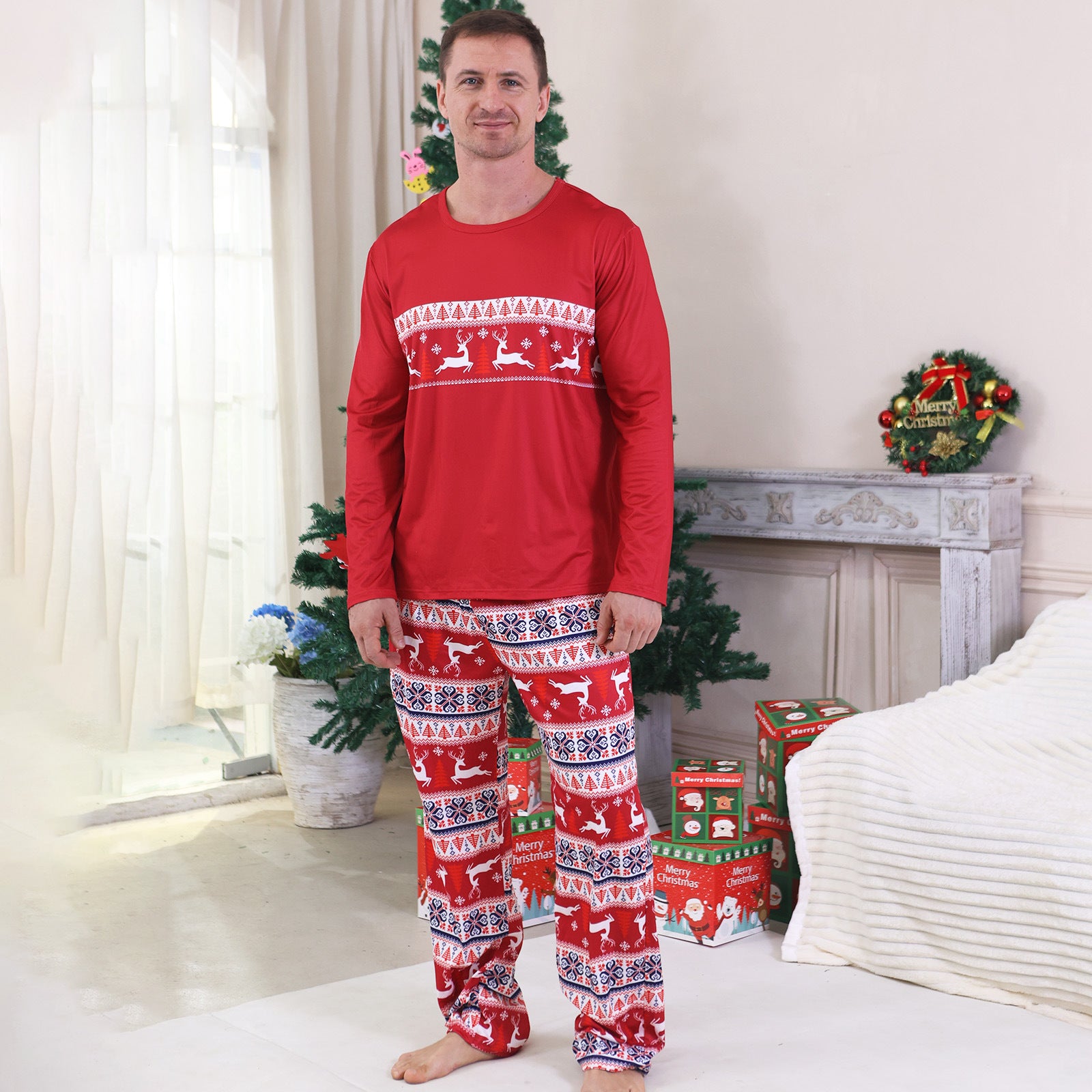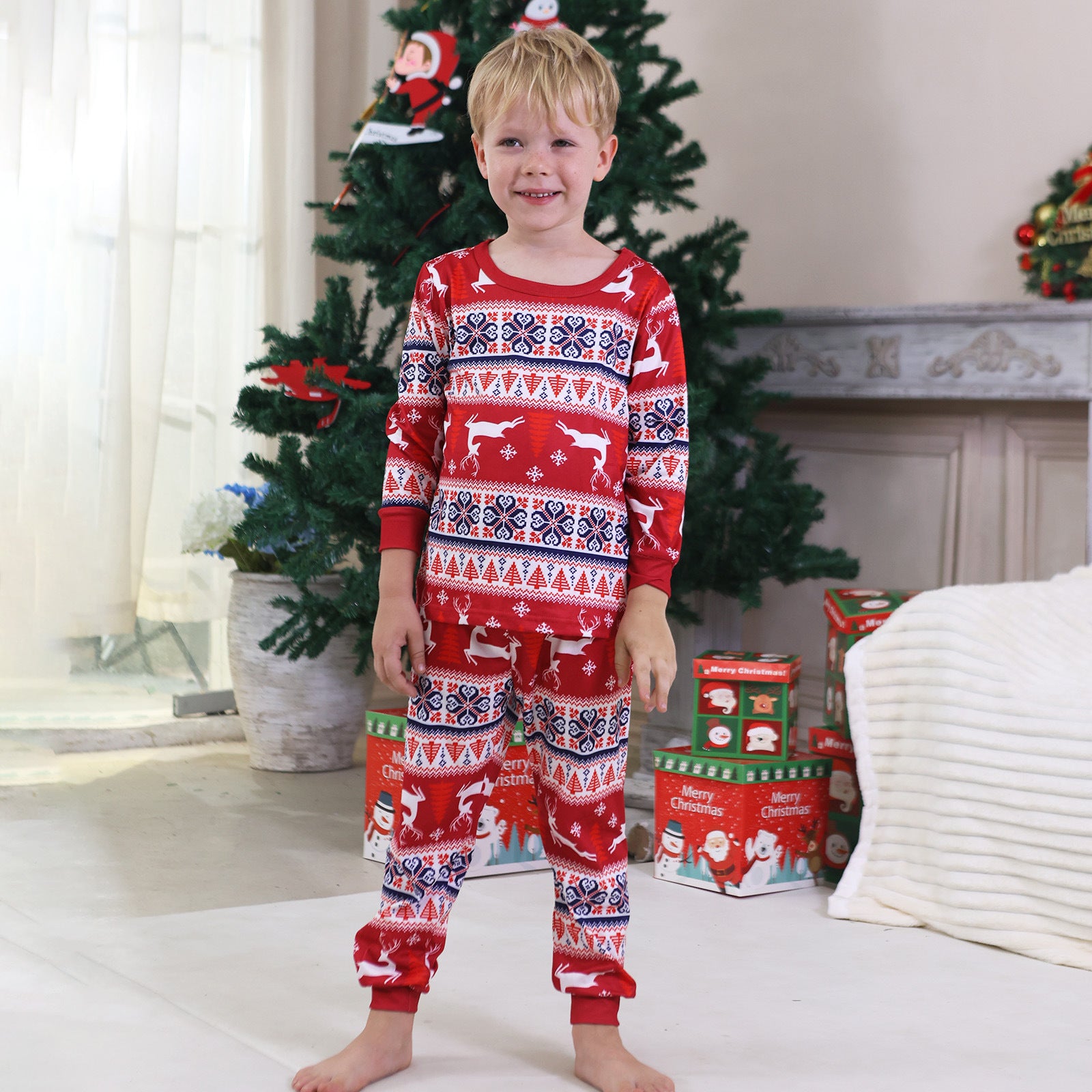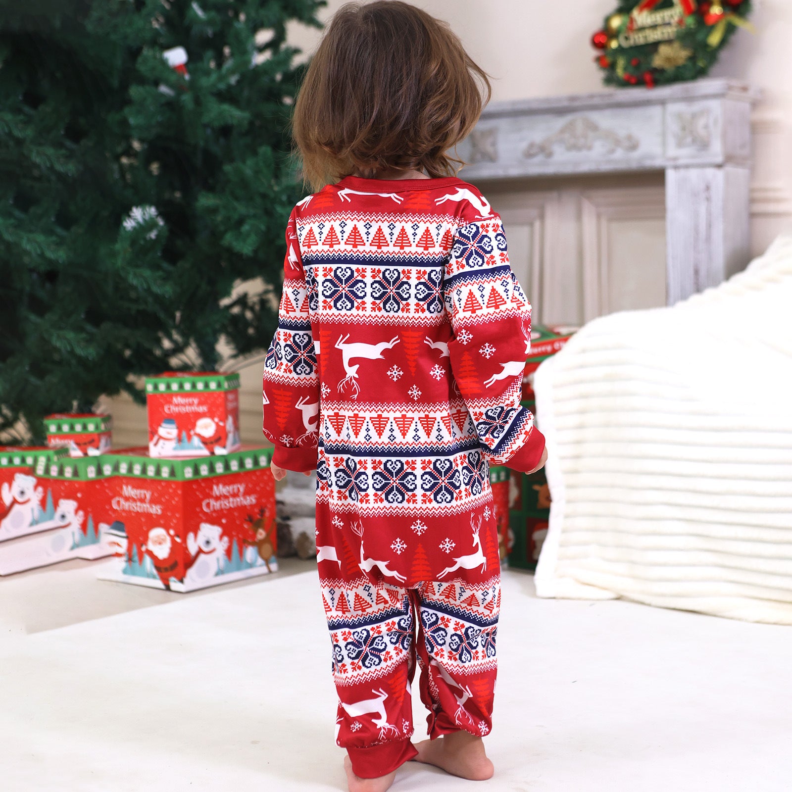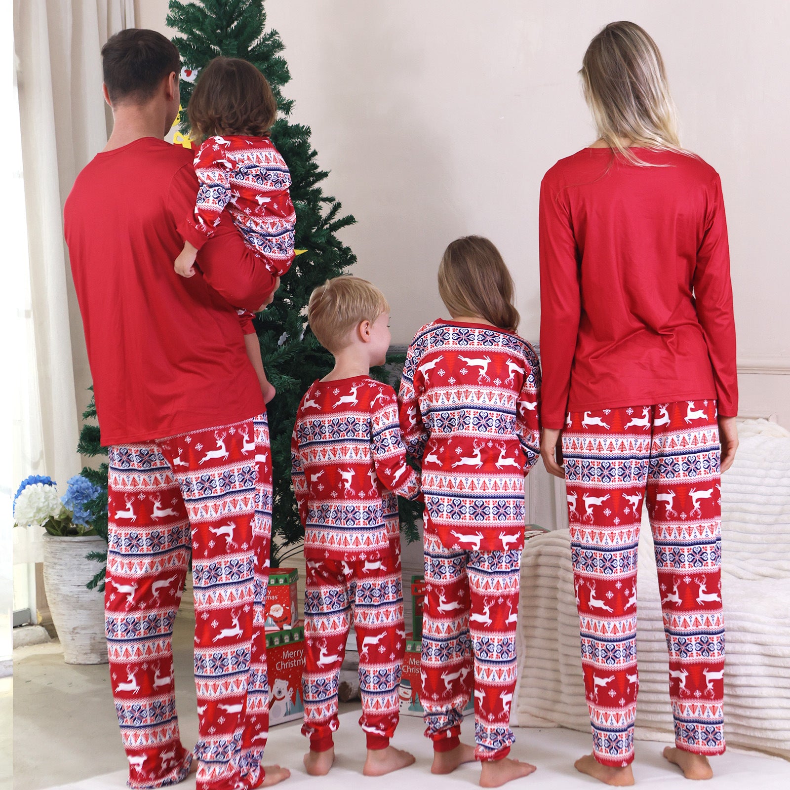 Retro Red Reindeer Snowflake Family Matching Pajamas Set
