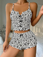 Skull Leopard Print Bow Ribbed Knit Pajama Set For Women