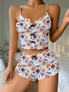 Spooky Halloween Watercolor Ghost Bow Ribbed Knit Pajama Set For Women