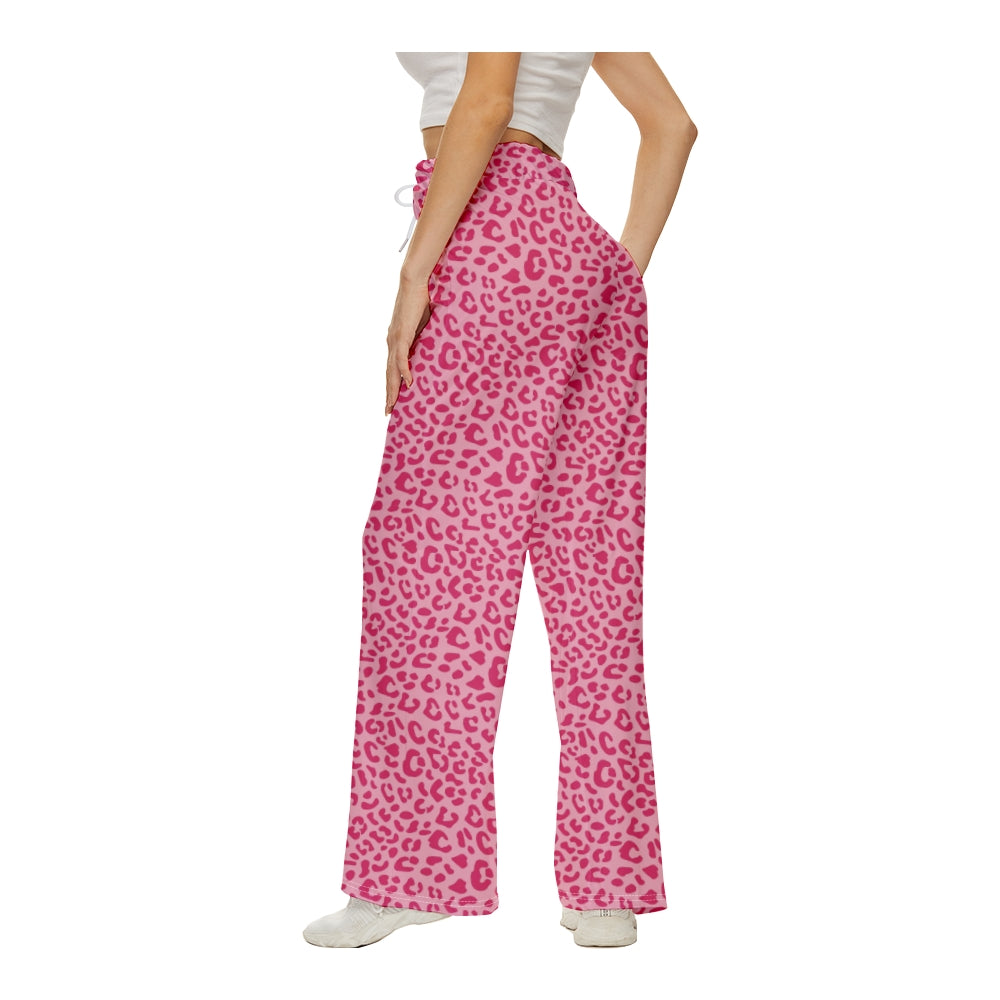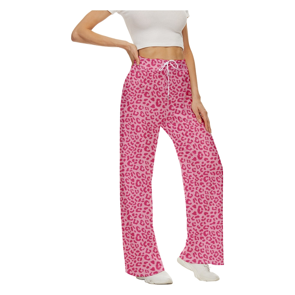 Pink Leopard Wide Leg Pants For Women