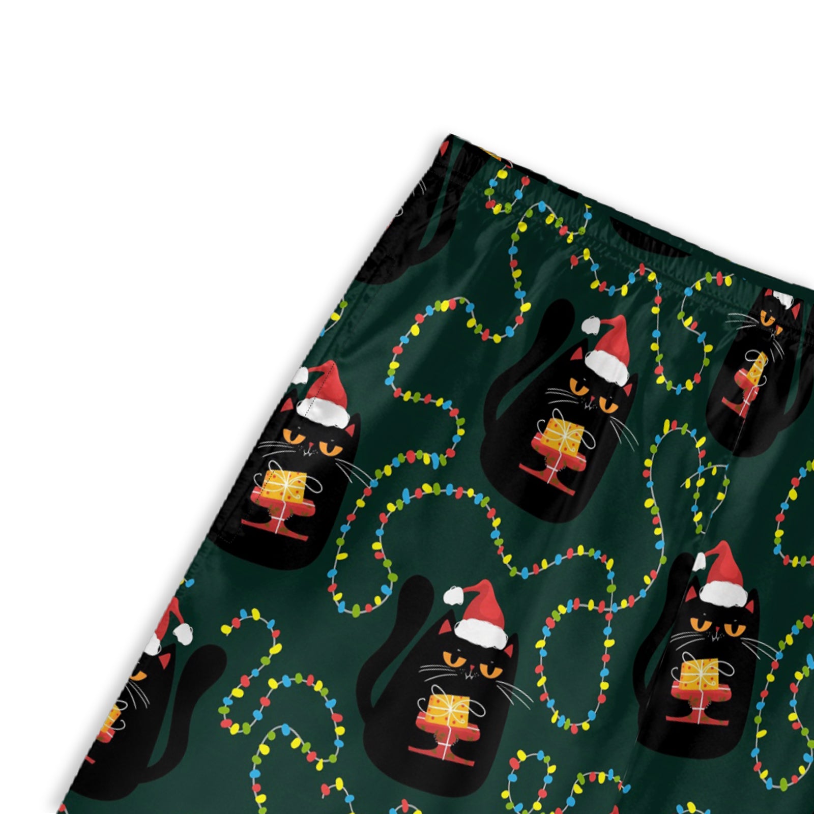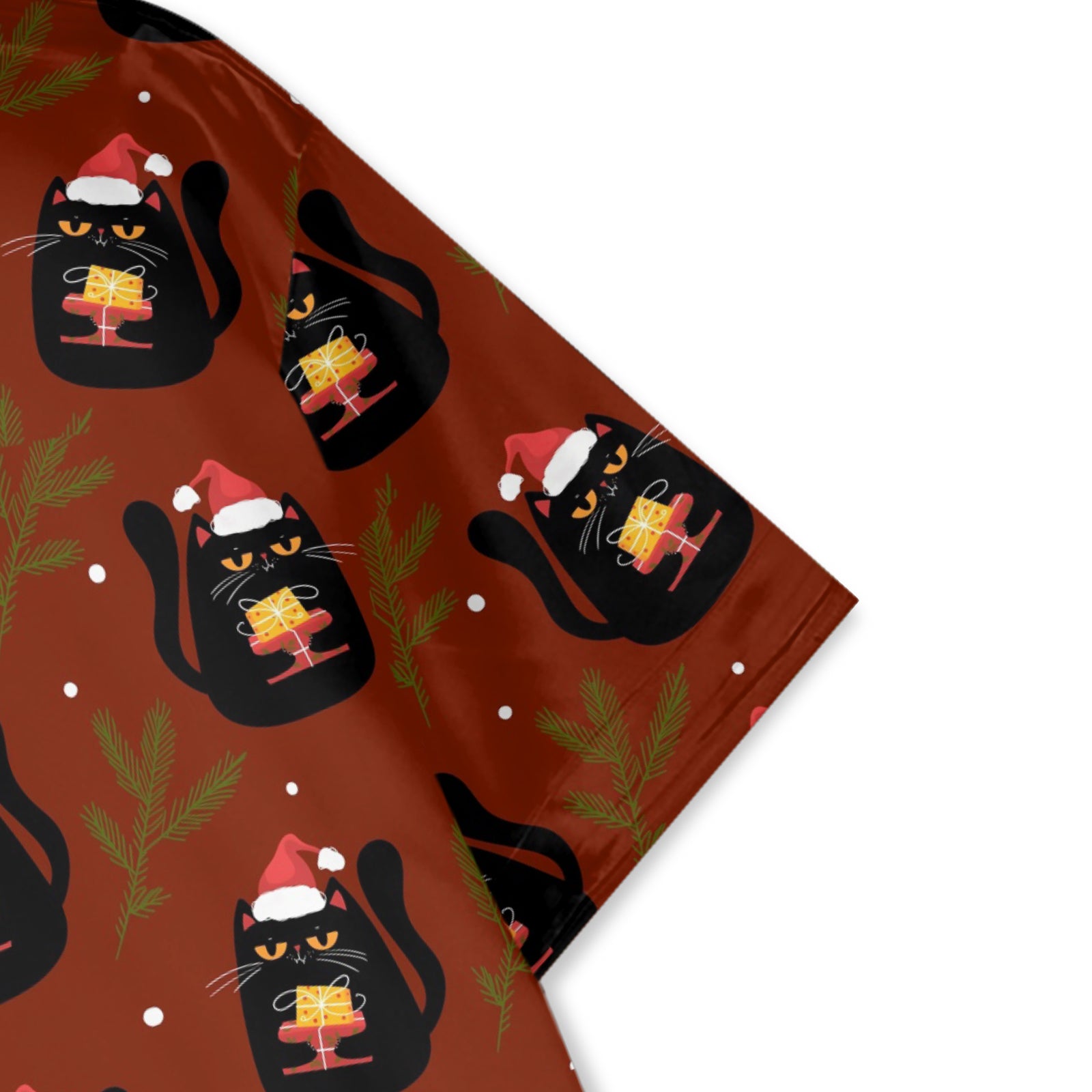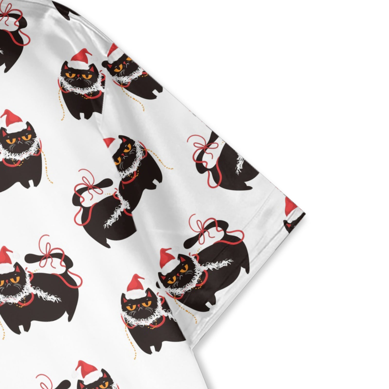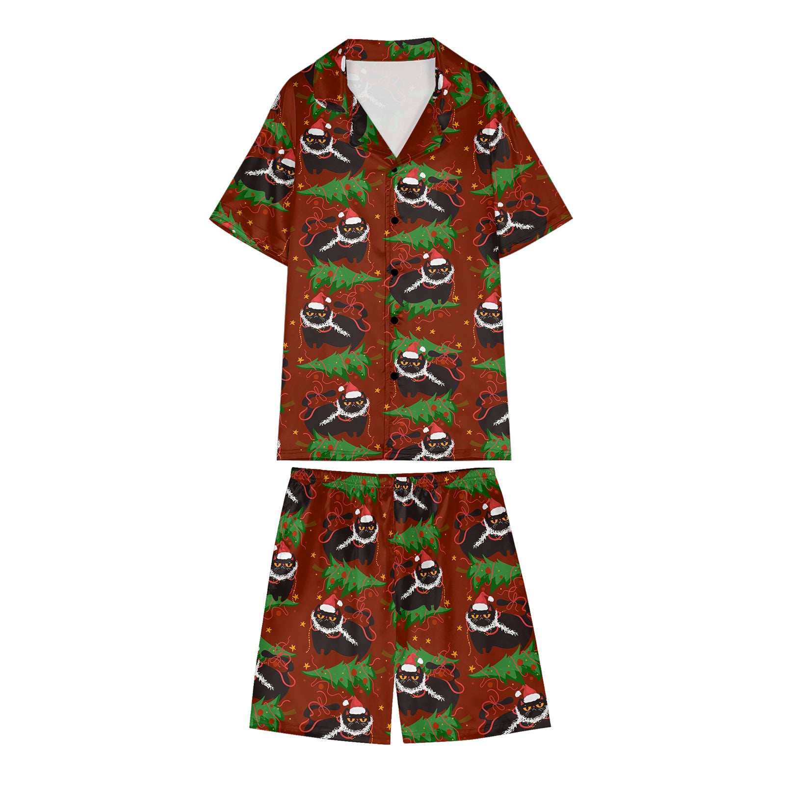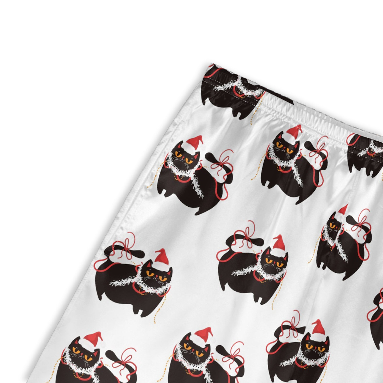 Black Cute Cat Christmas Satin Pajama Set For Women