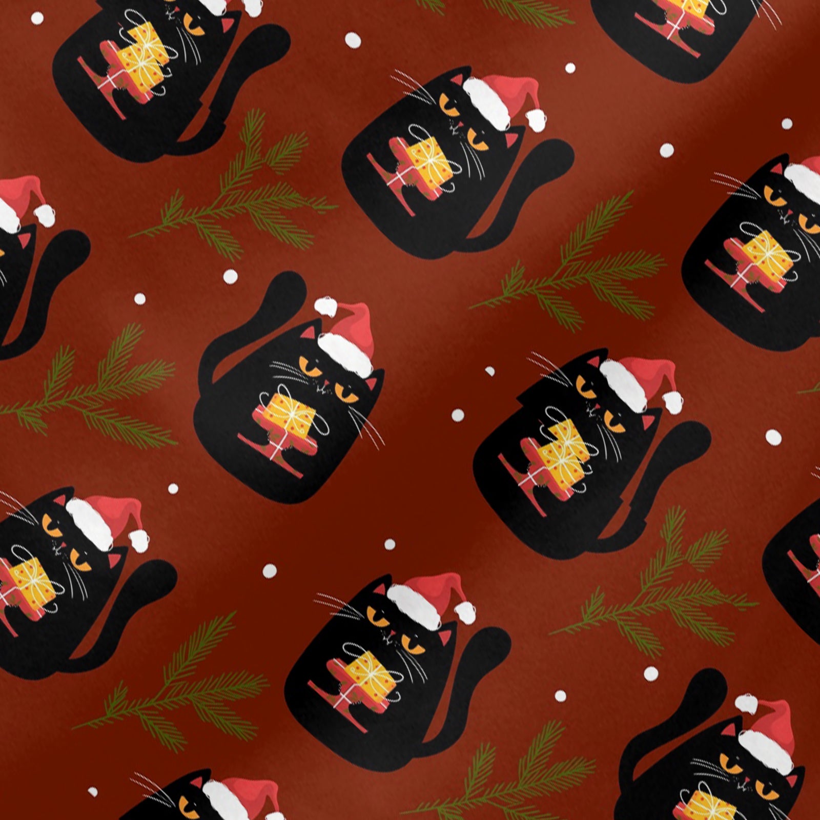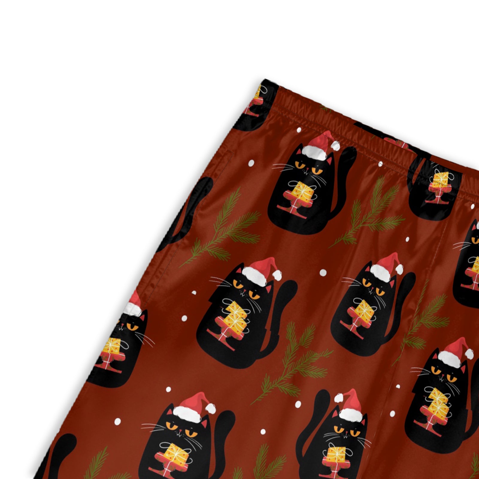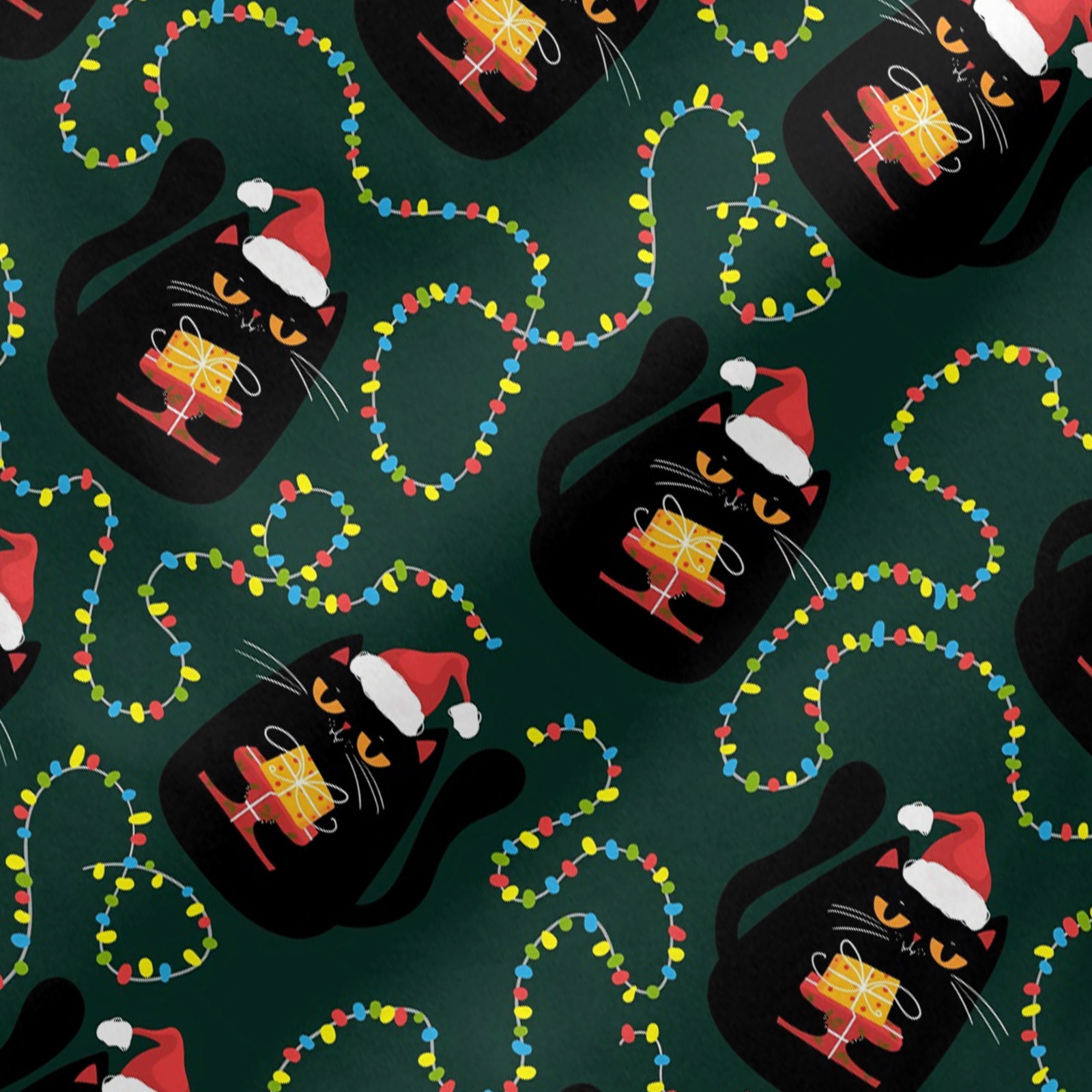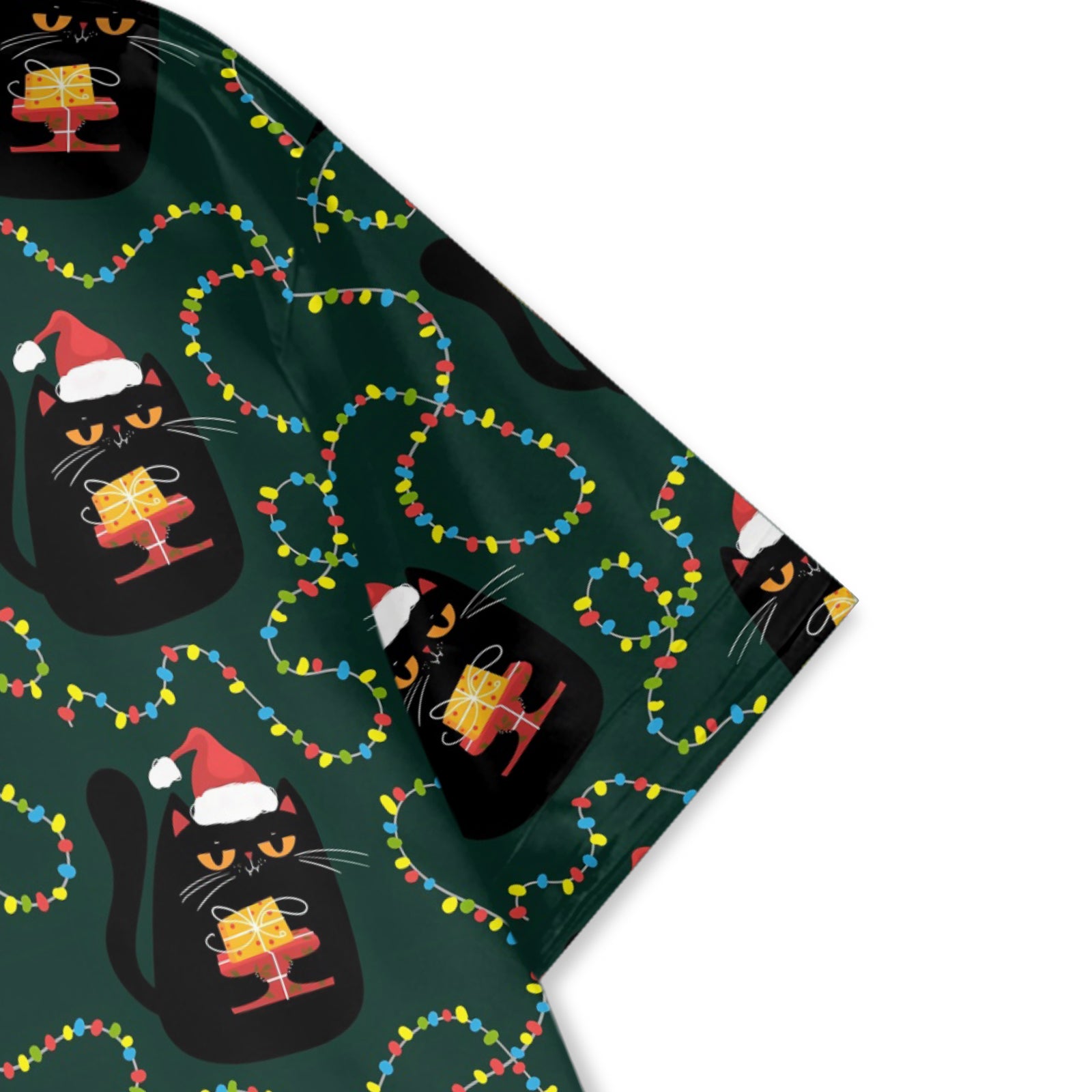 Black Cute Cat Christmas Satin Pajama Set For Women