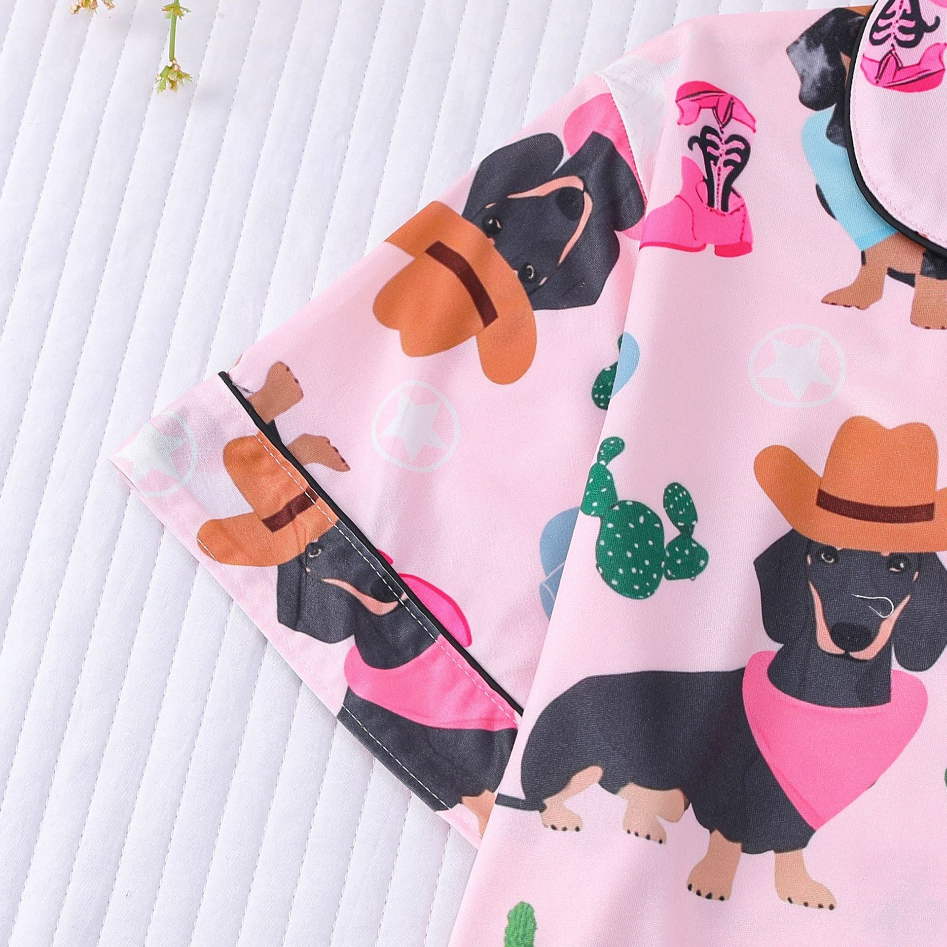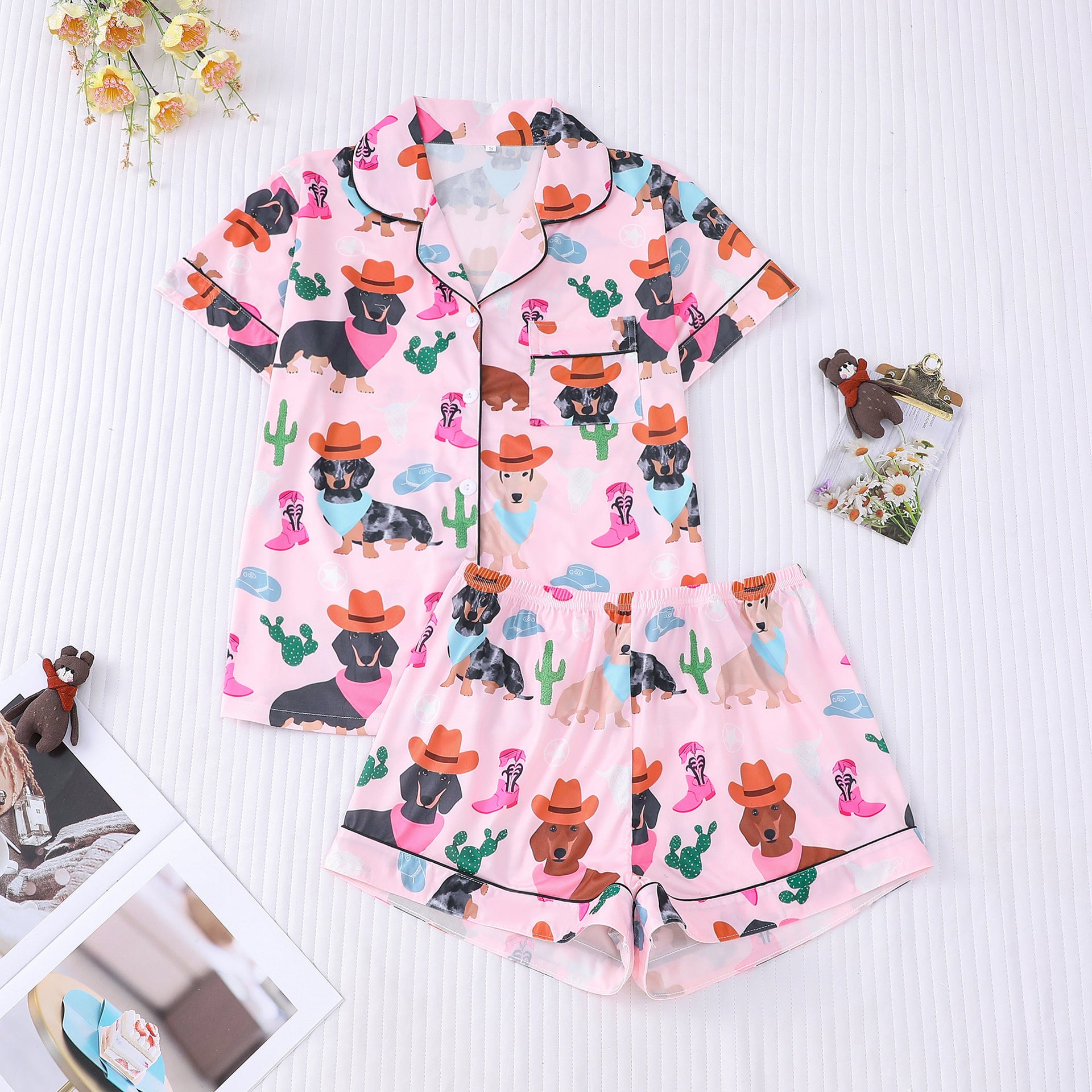 Dachshund Toile De Jouy Satin Pajama Set For Women