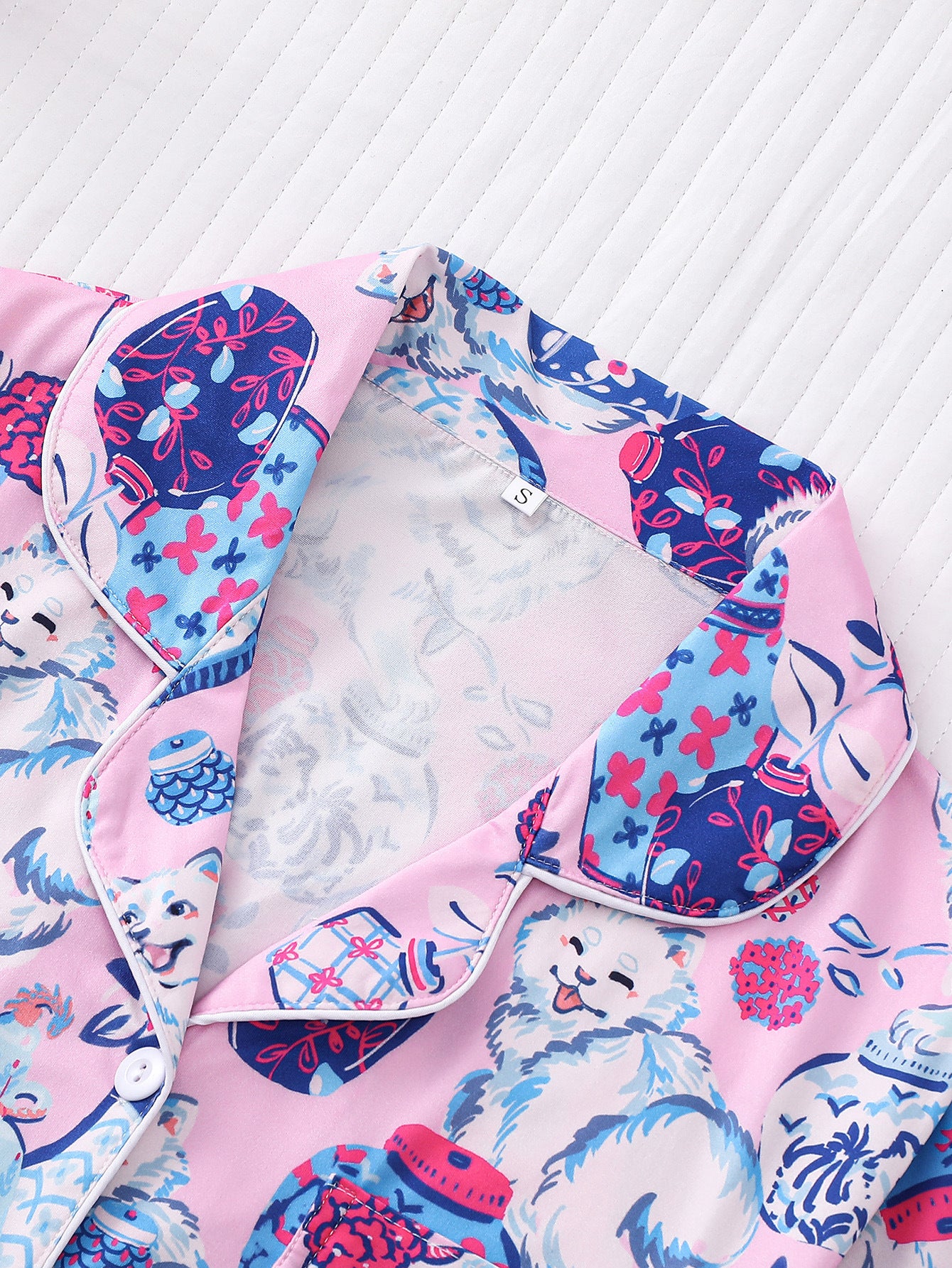 Christmas Dogs In Holiday Satin Pajama Set For Women