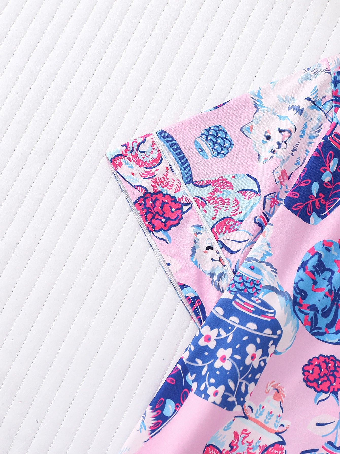 Blue Toile De Jouy Siamese Cat Lace Camisole Bodydress