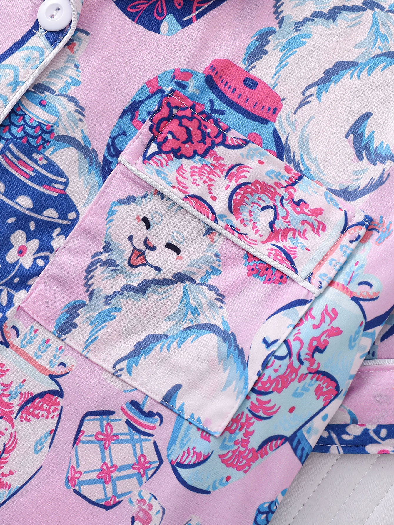 Cat Gift and Snowflake Satin Pajama Set For Women