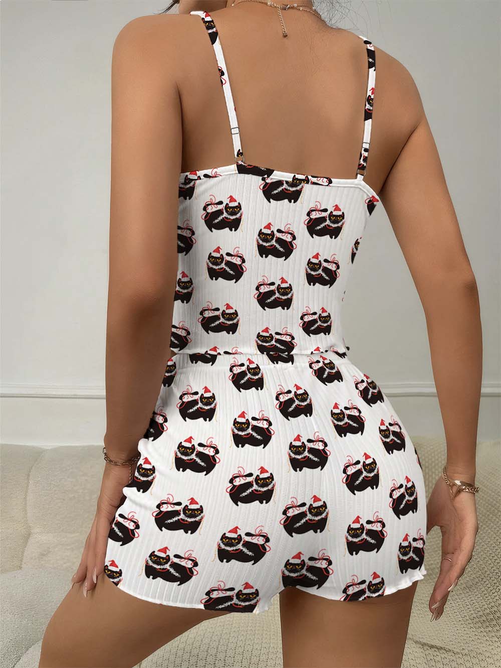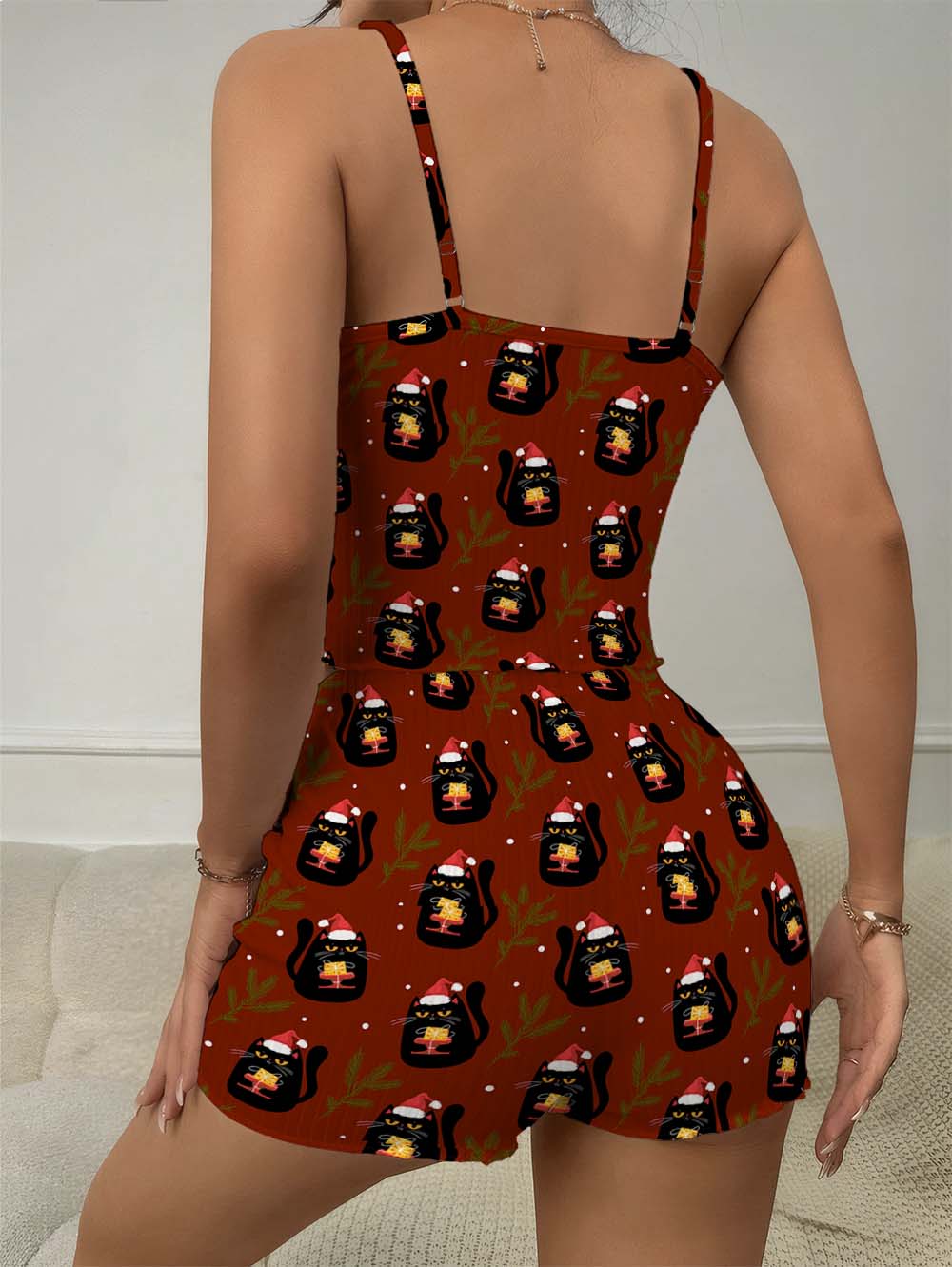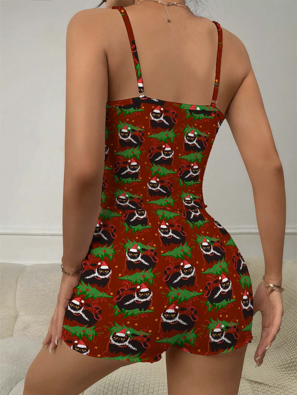 Black Cute Cat Christmas Lace Camisole Bodydress