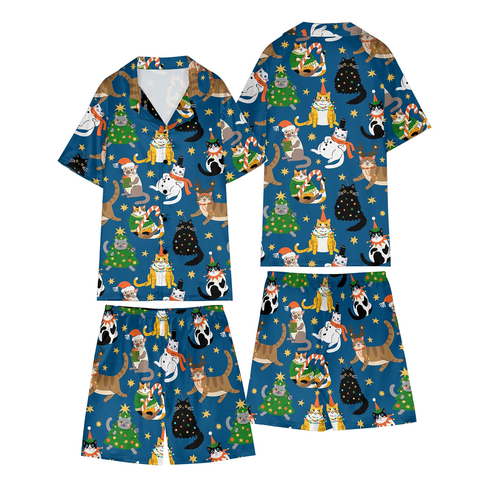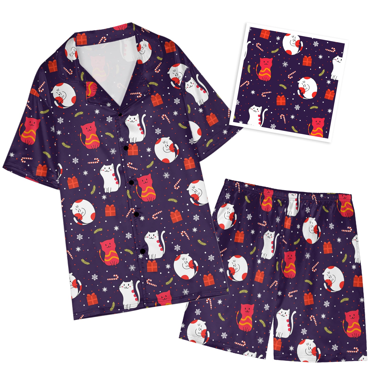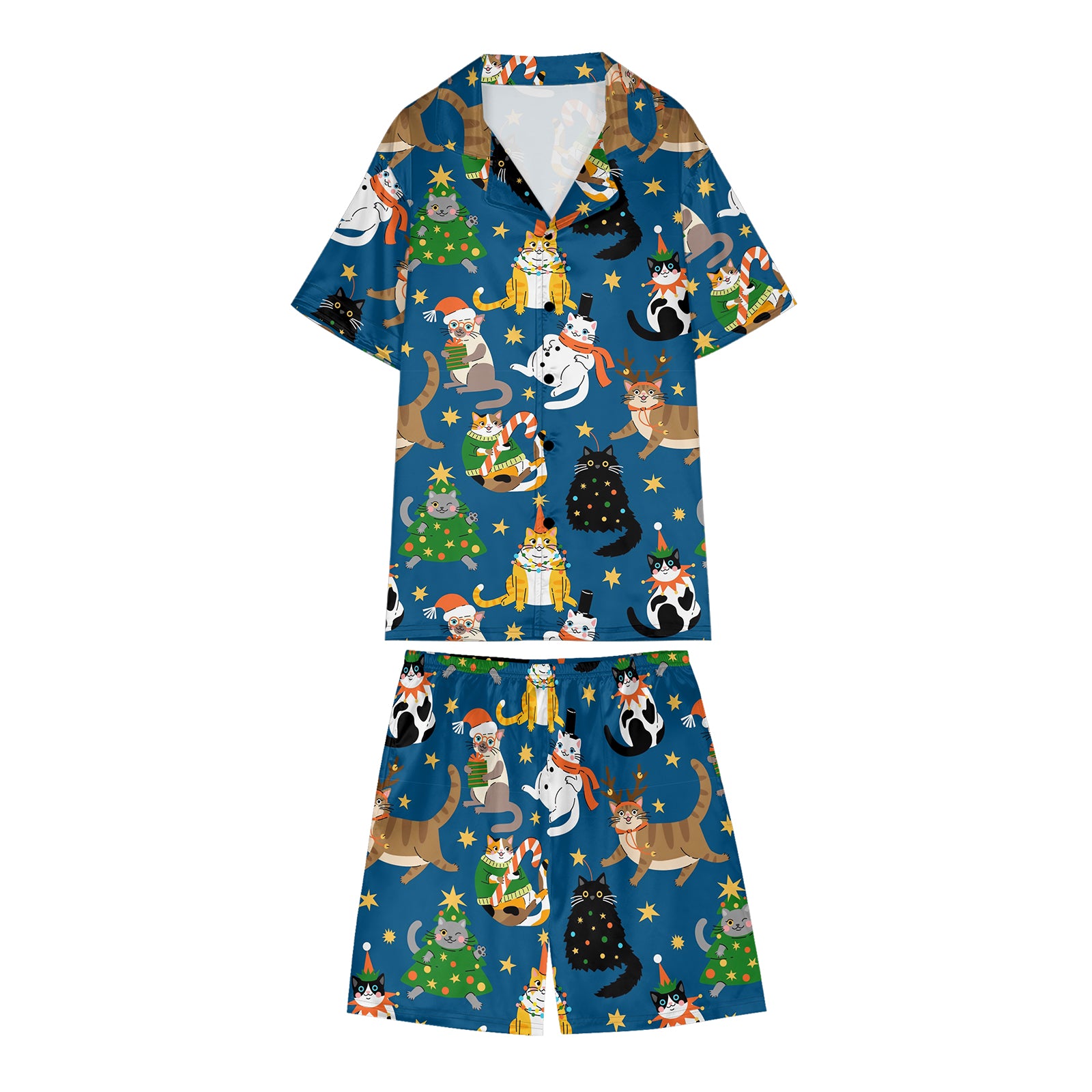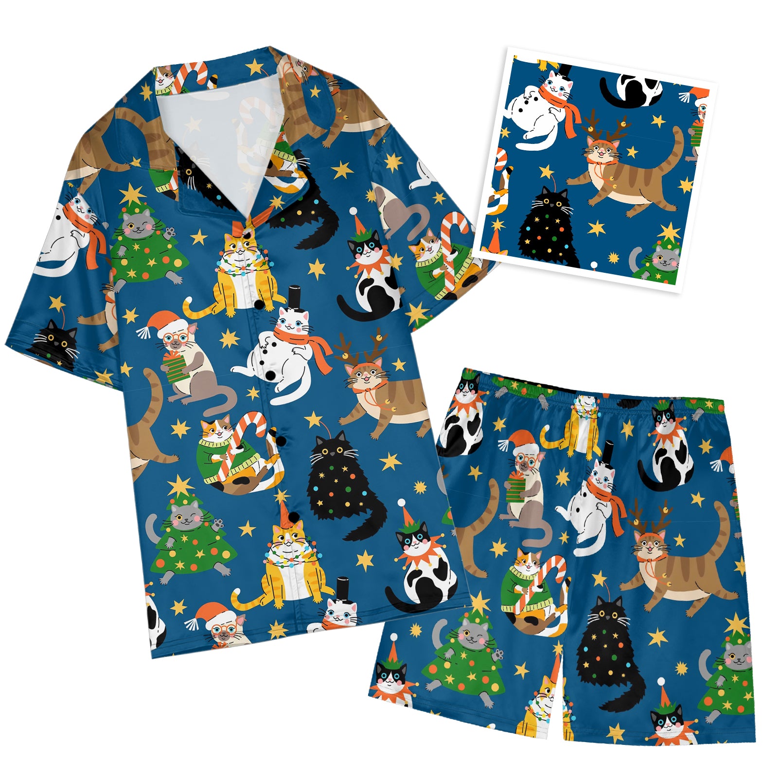 Cute Cat Christmas Outfits Satin Pajama Set For Women