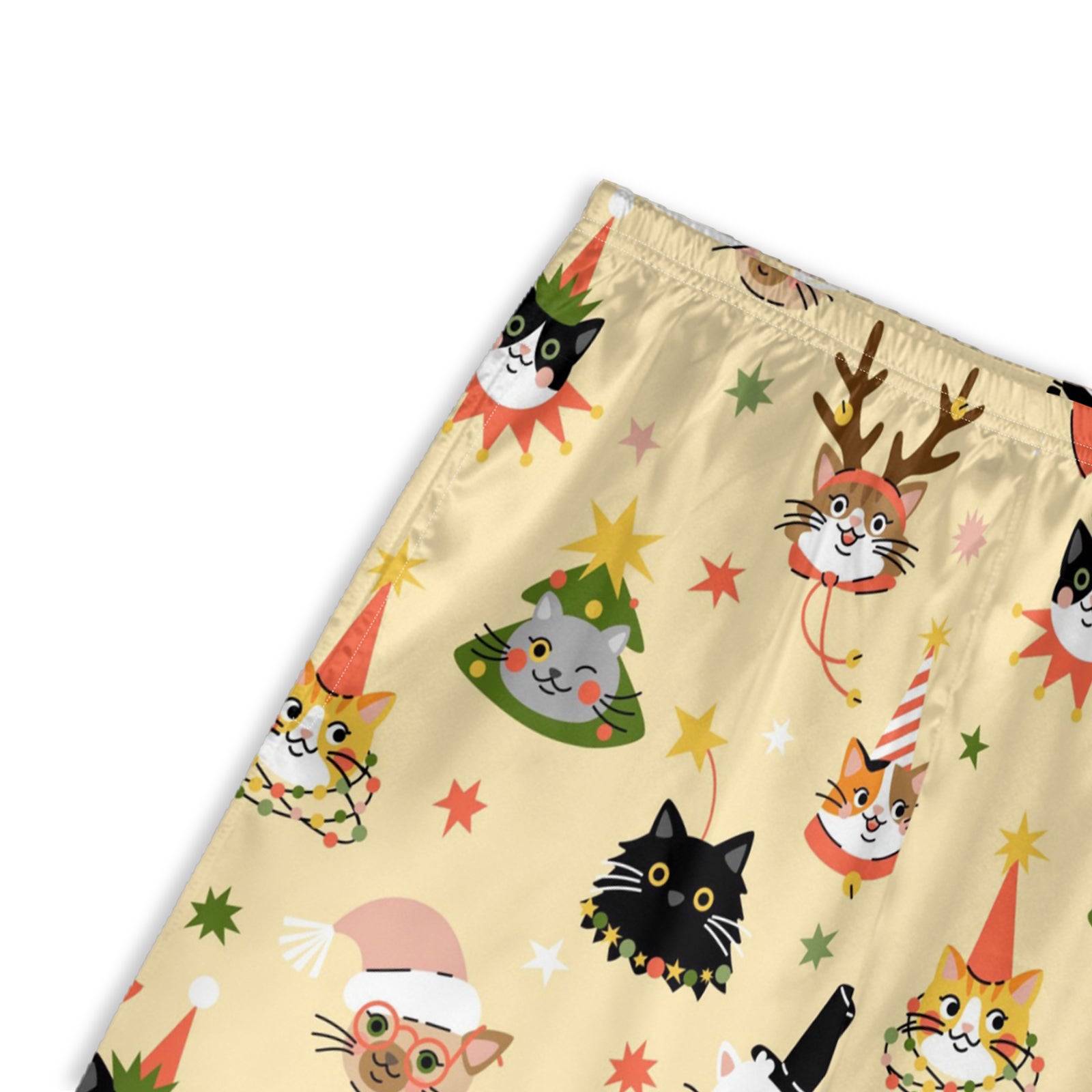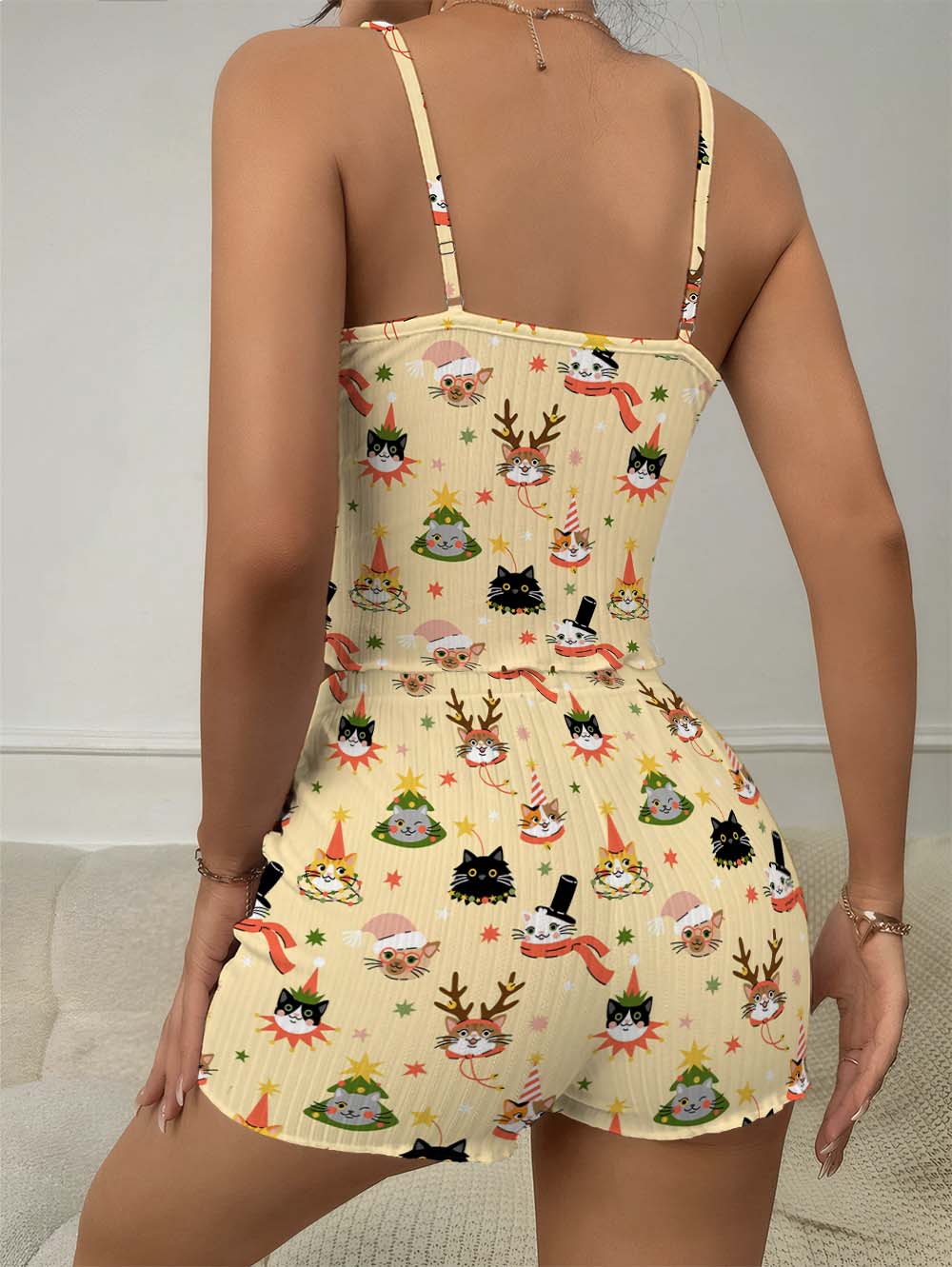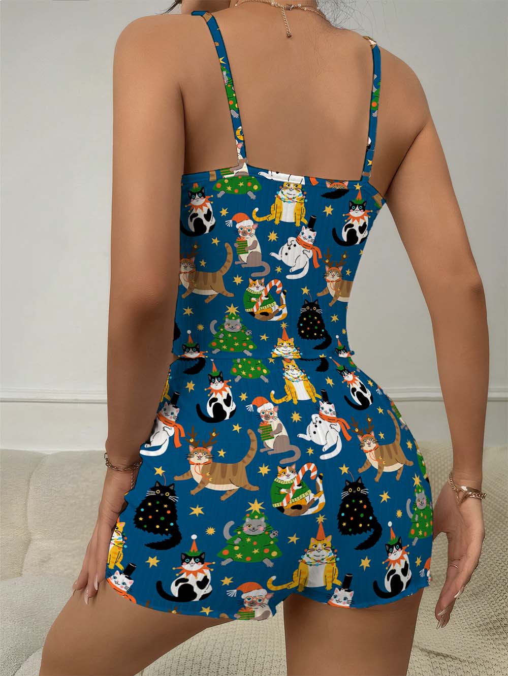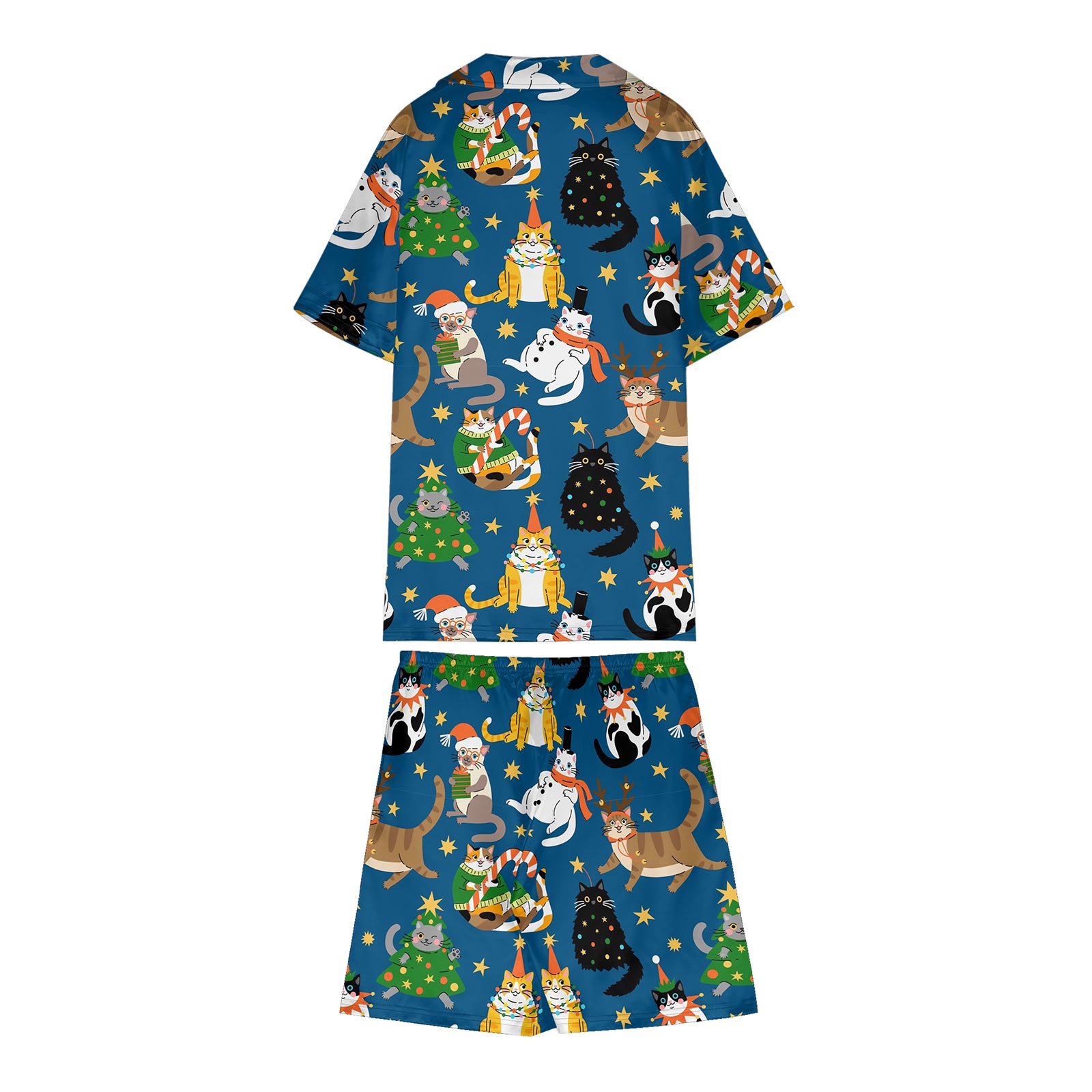 Cute Cat Christmas Outfits Satin Pajama Set For Women