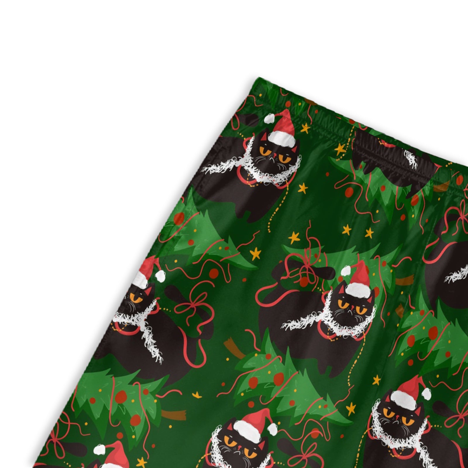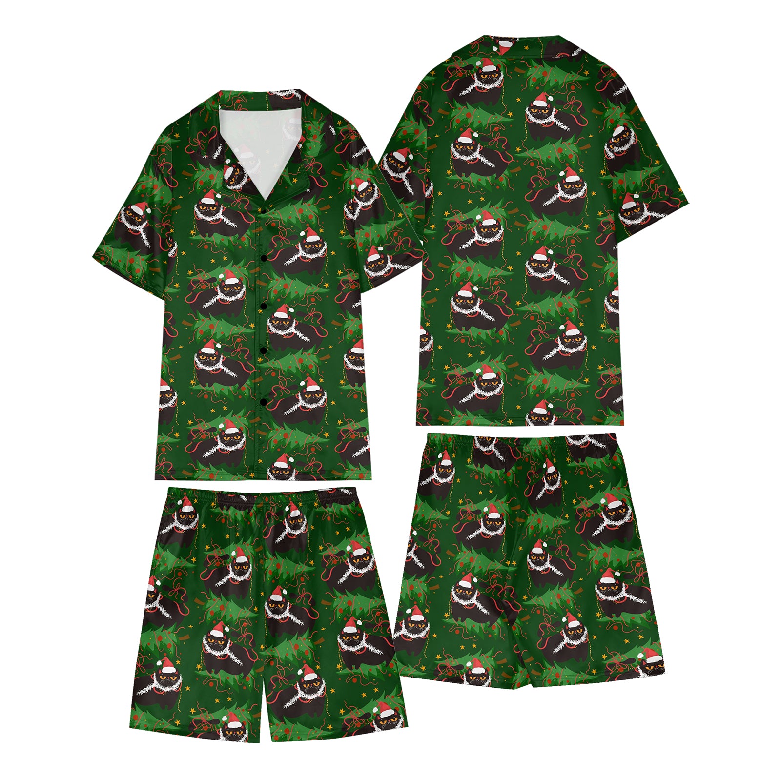Funny Green Christmas Cat Satin Pajama Set For Women