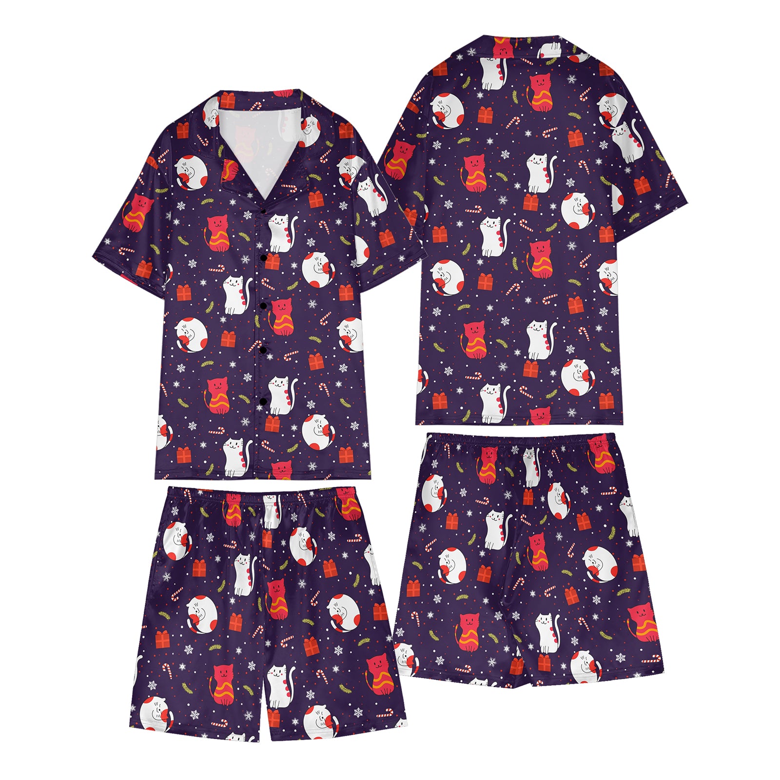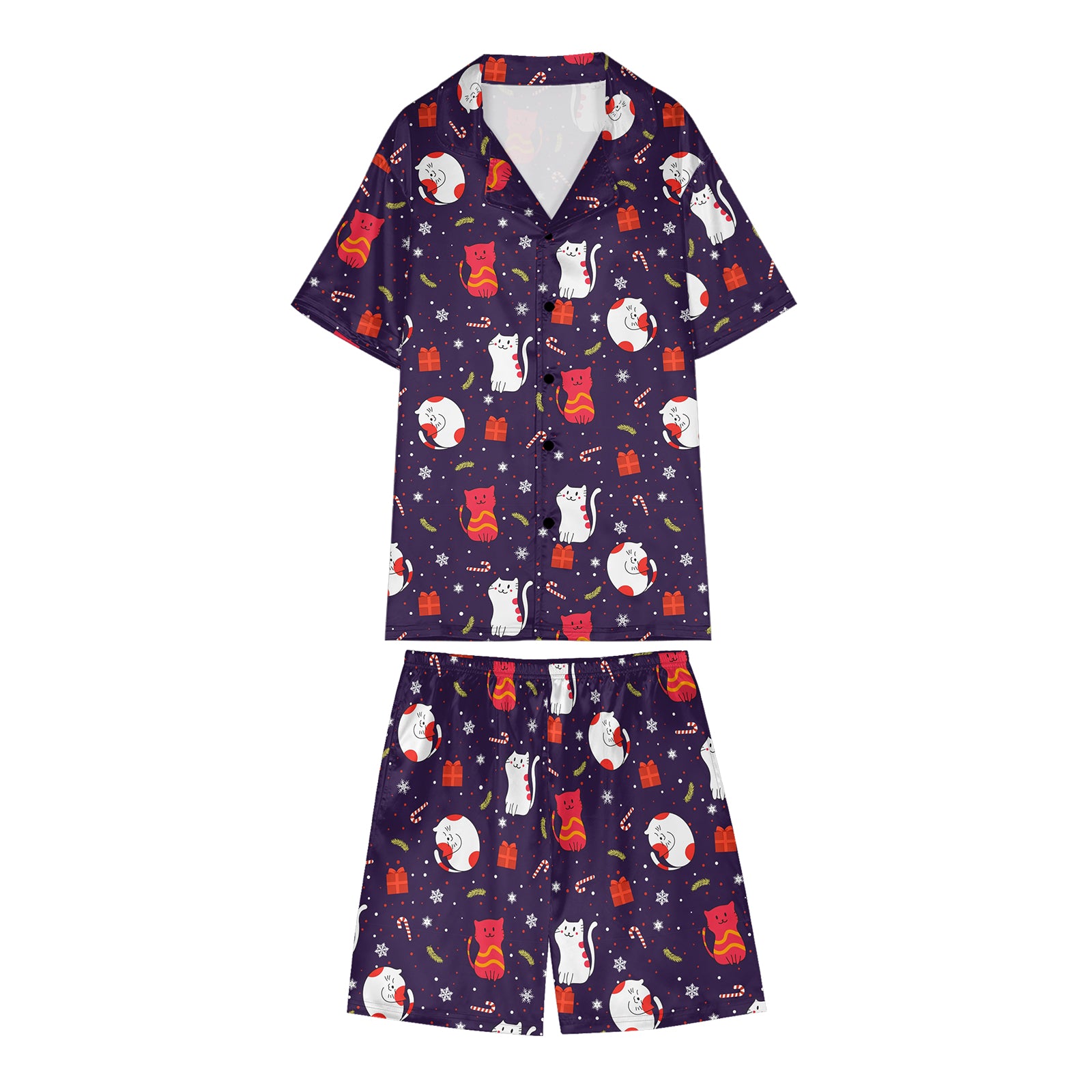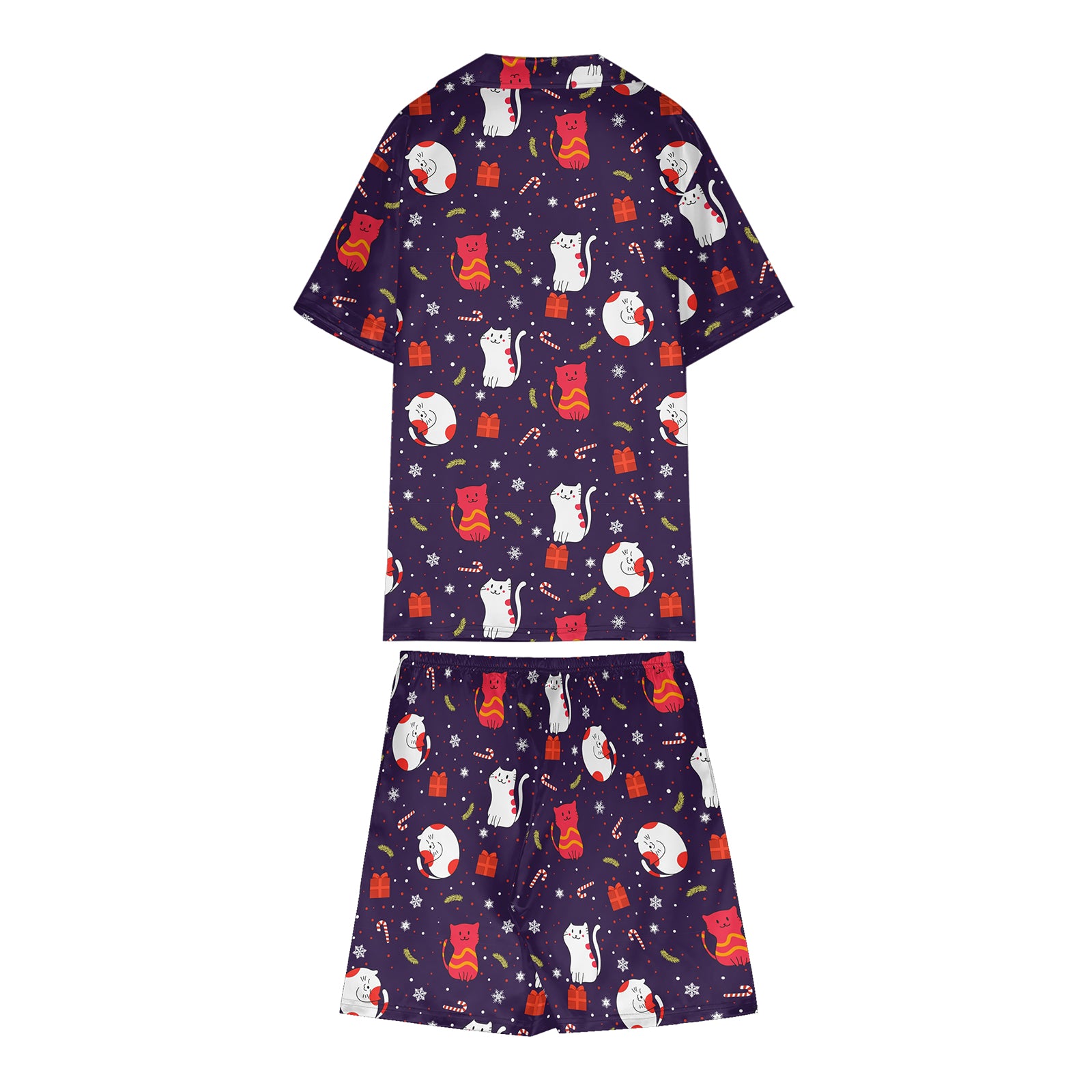 Cat Gift and Snowflake Satin Pajama Set For Women