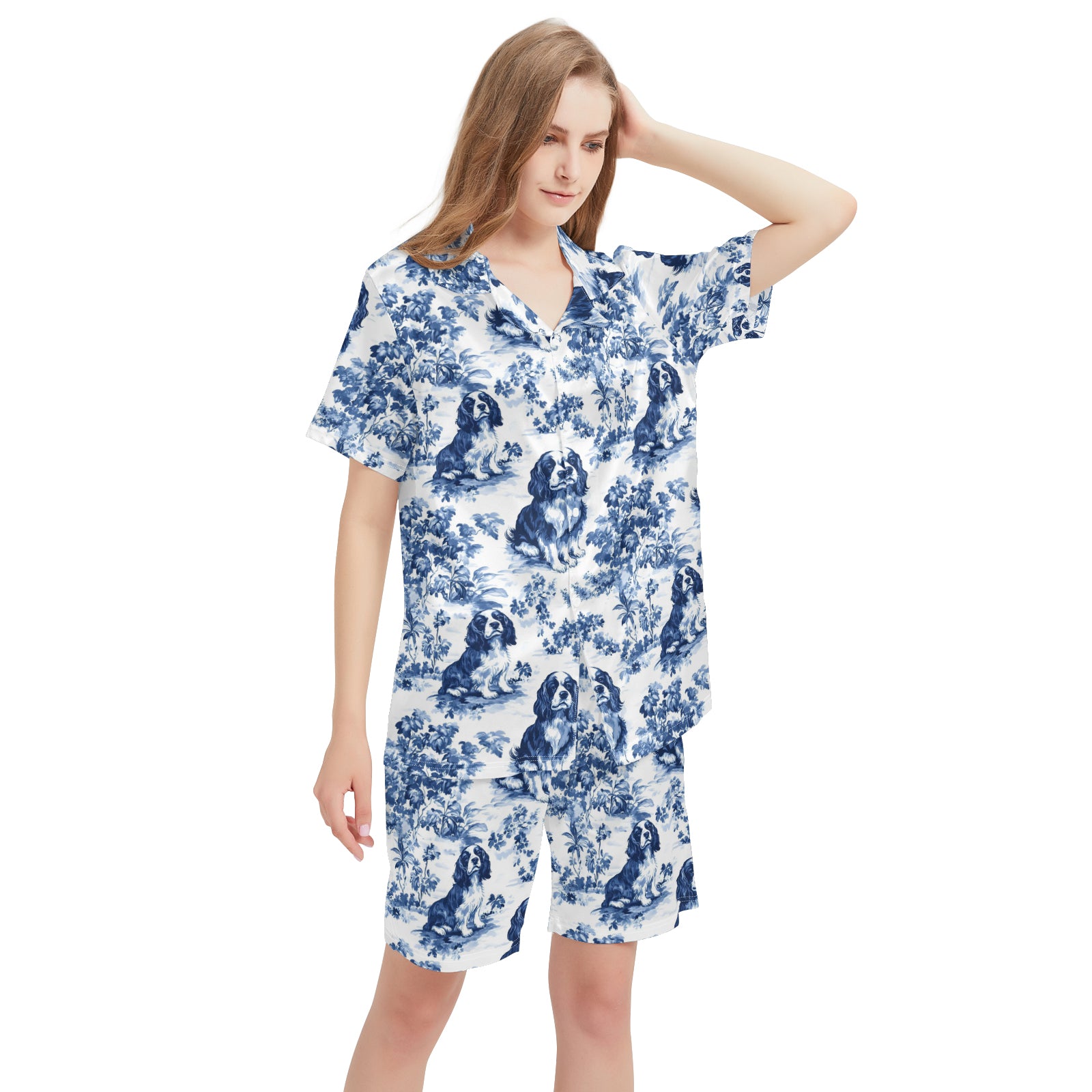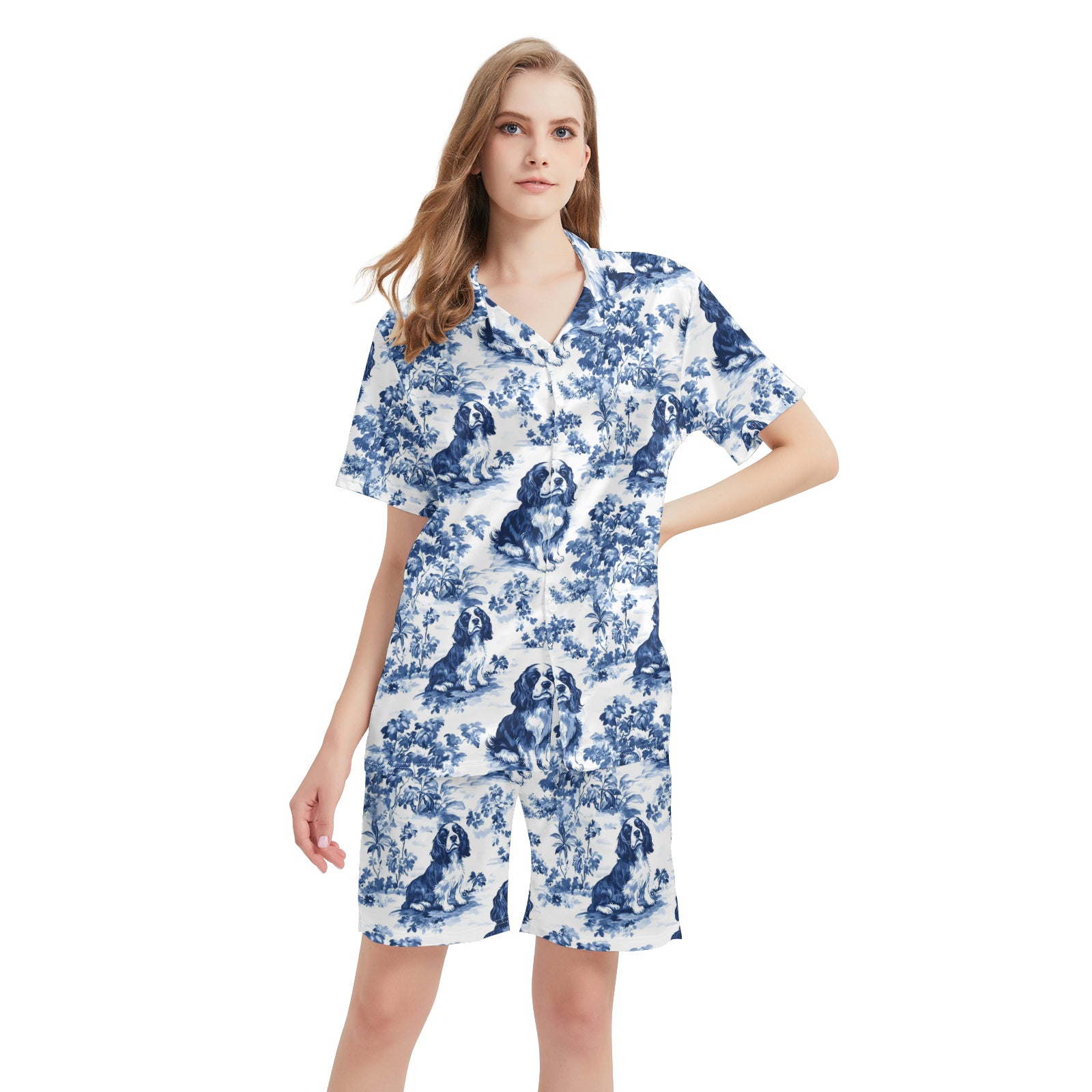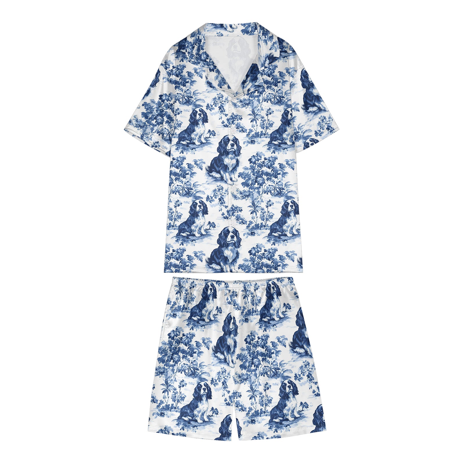 Cavalier King Charles Spaniel Blue Satin Pajama Set For Women
