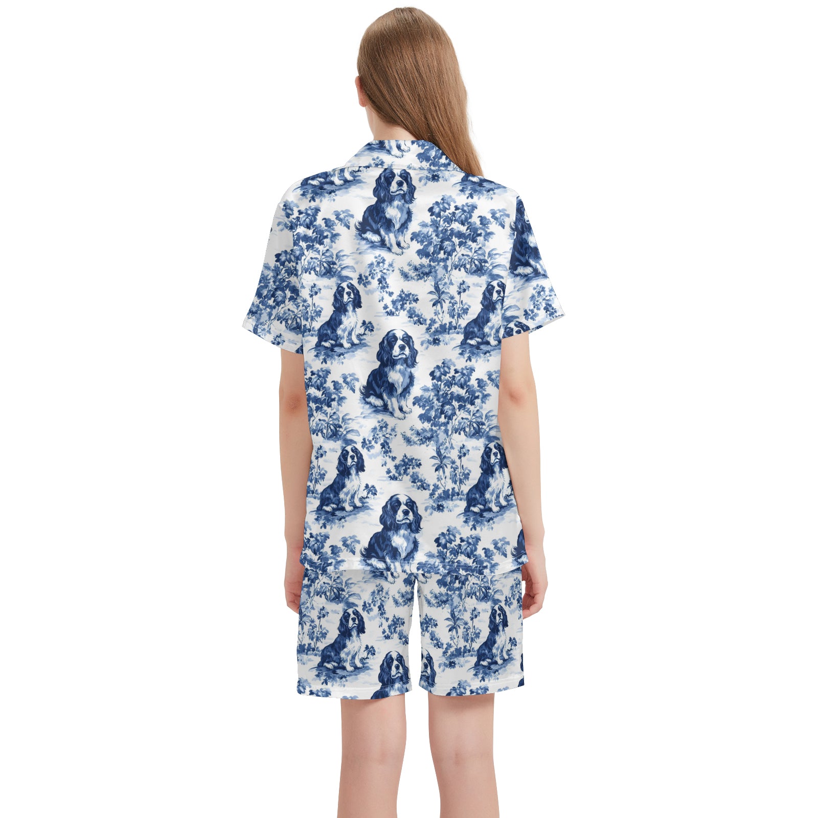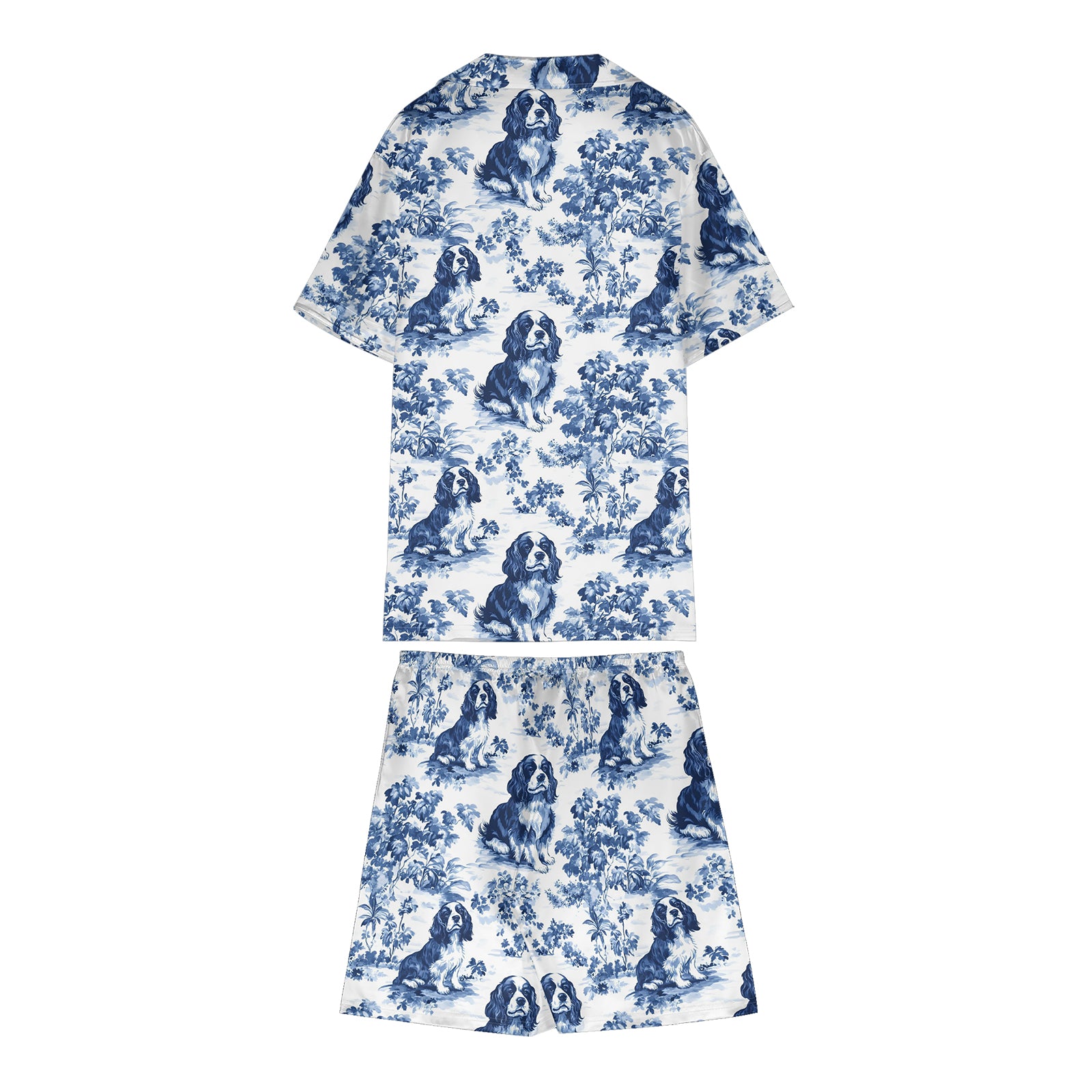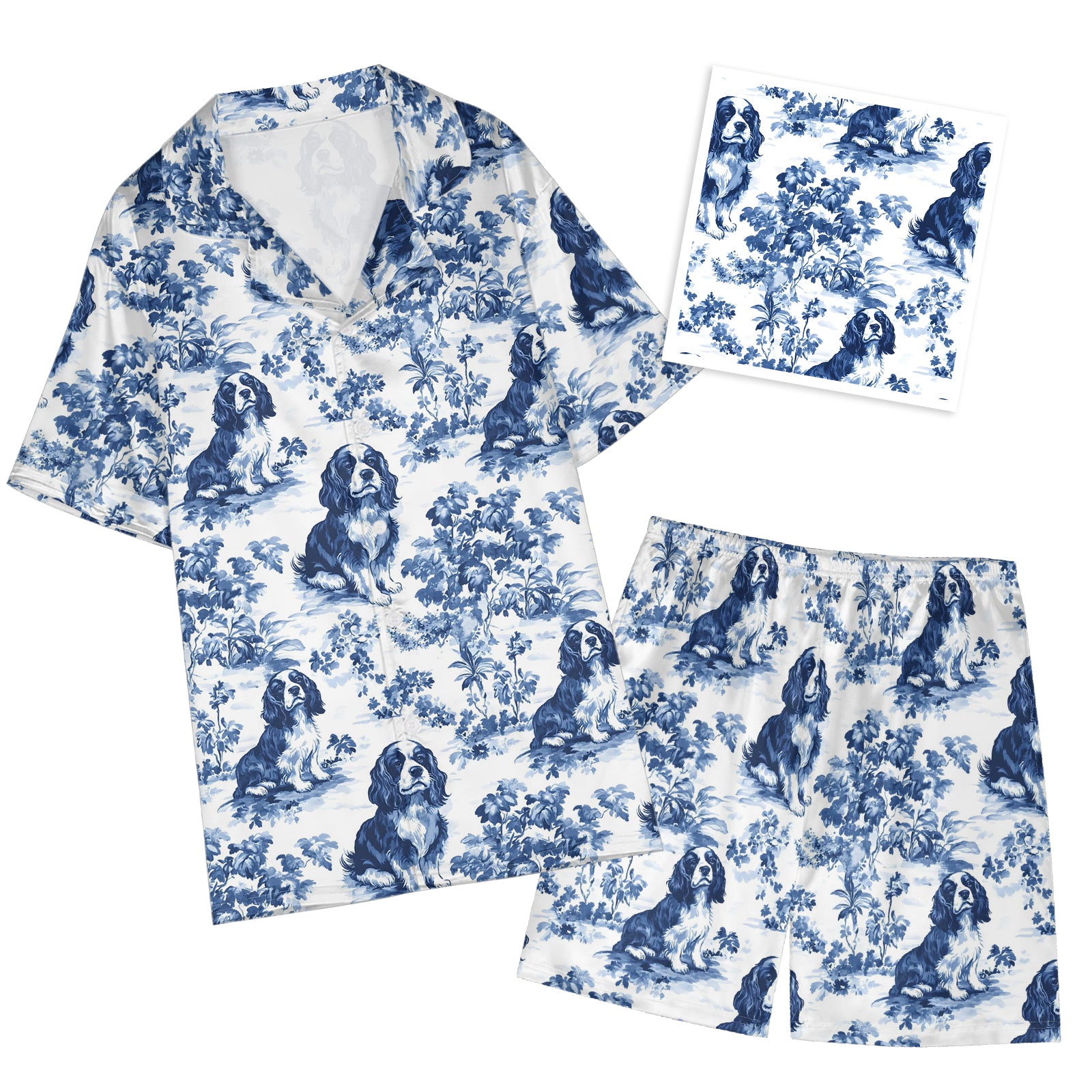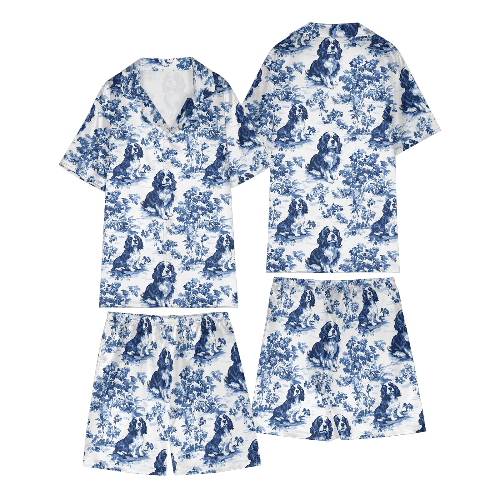 Cavalier King Charles Spaniel Blue Satin Pajama Set For Women
