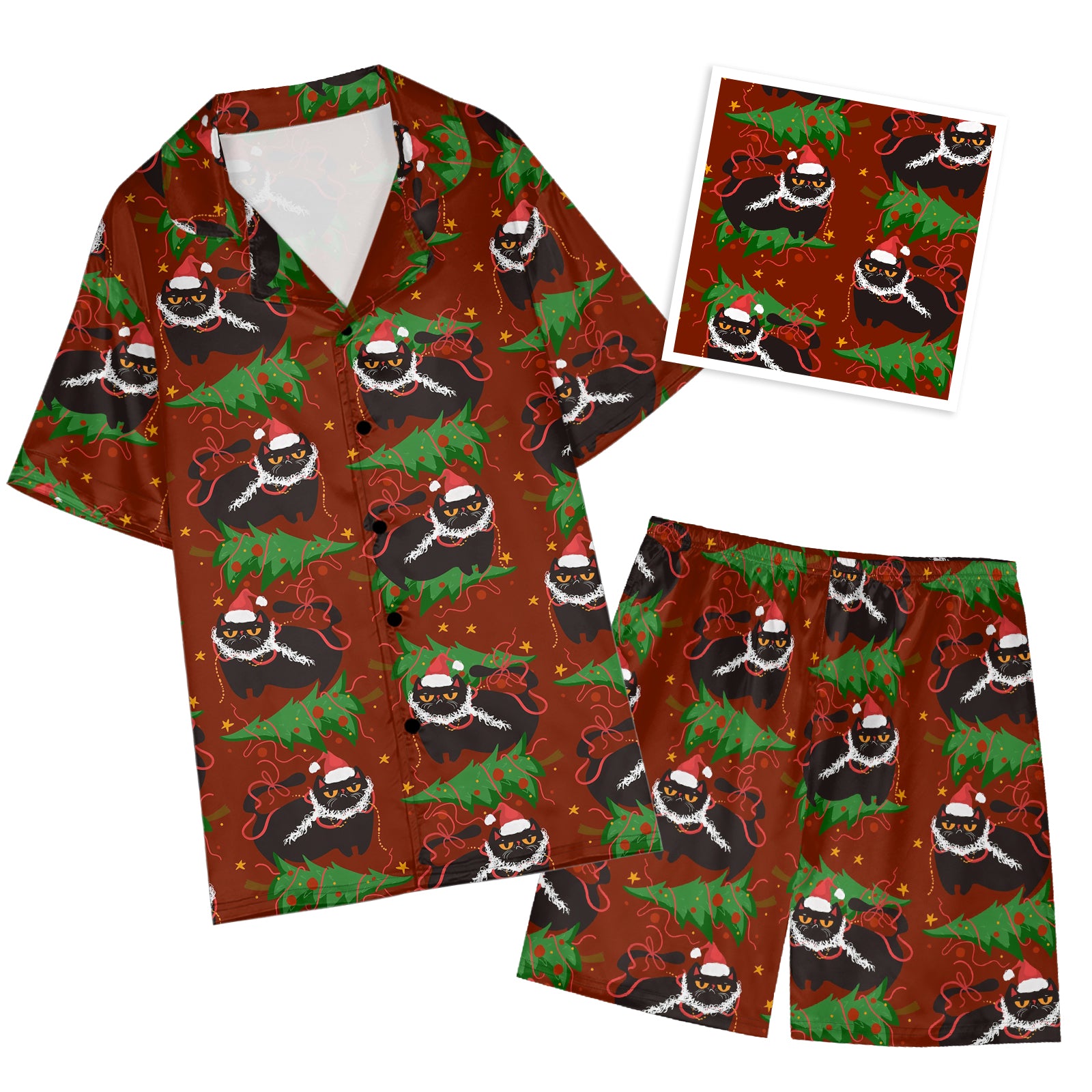 Funny Christmas Cat Satin Pajama Set For Women