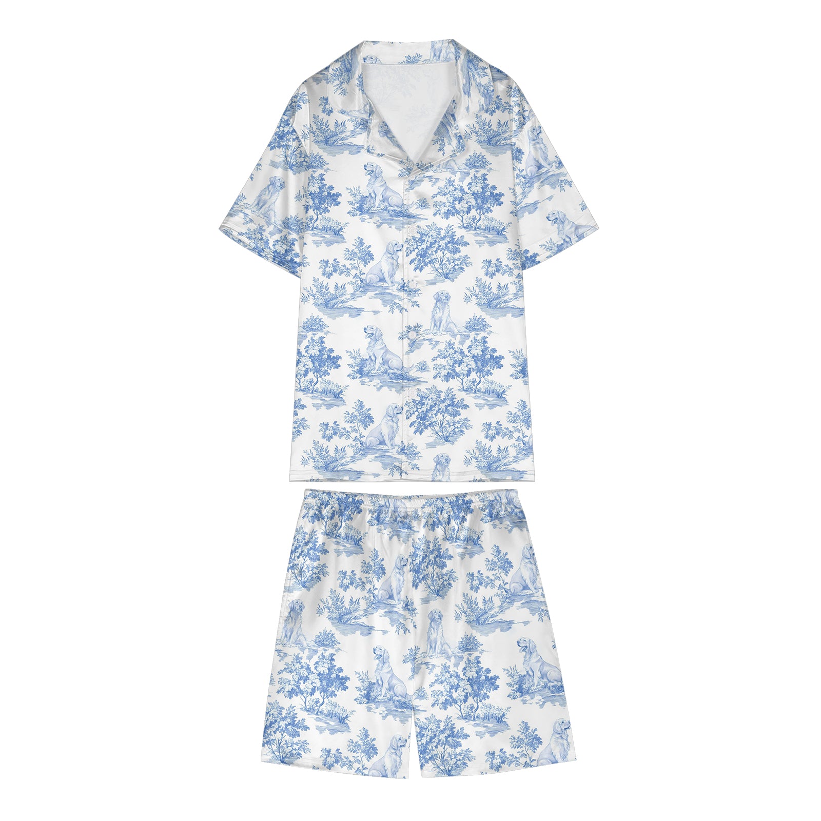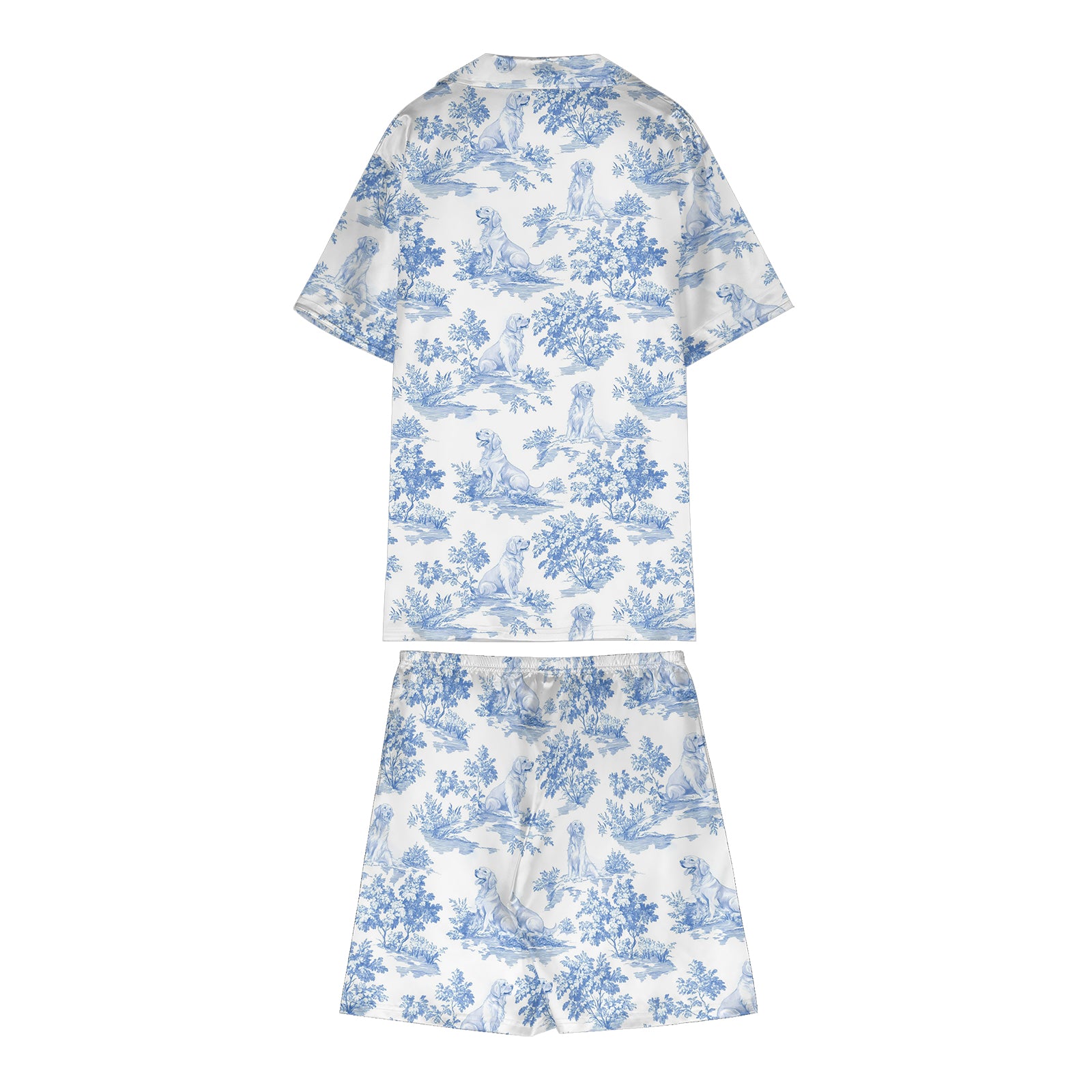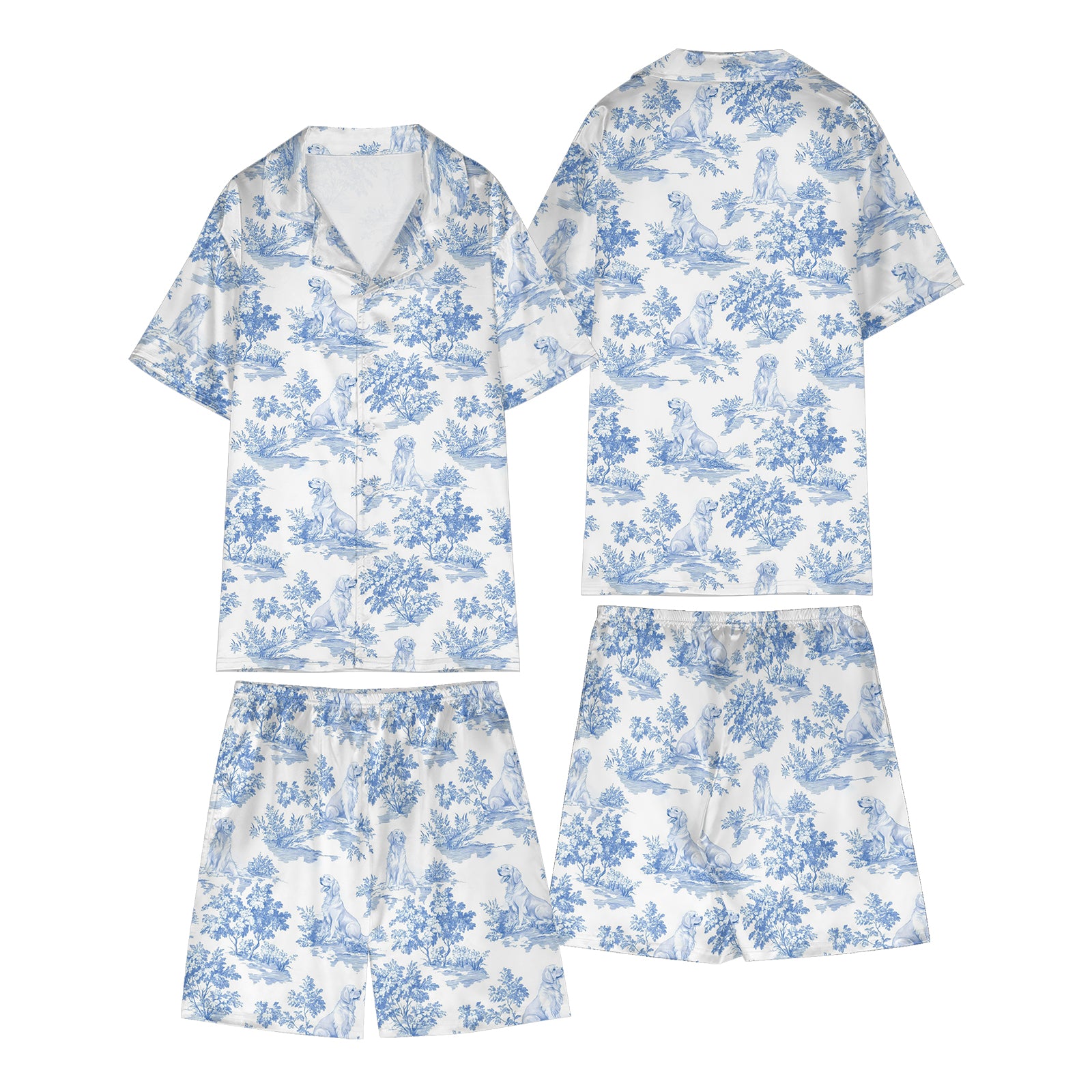 Golden Retriever Dog Blue Satin Pajama Set For Women